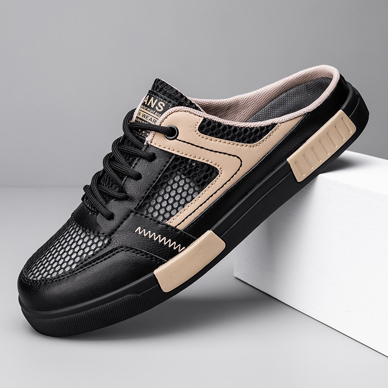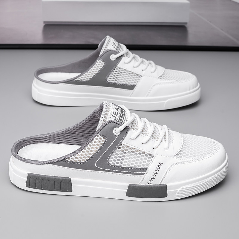 拖鞋男夏季网面透气大码包头半拖一脚蹬懒人办公室上班无后跟凉鞋