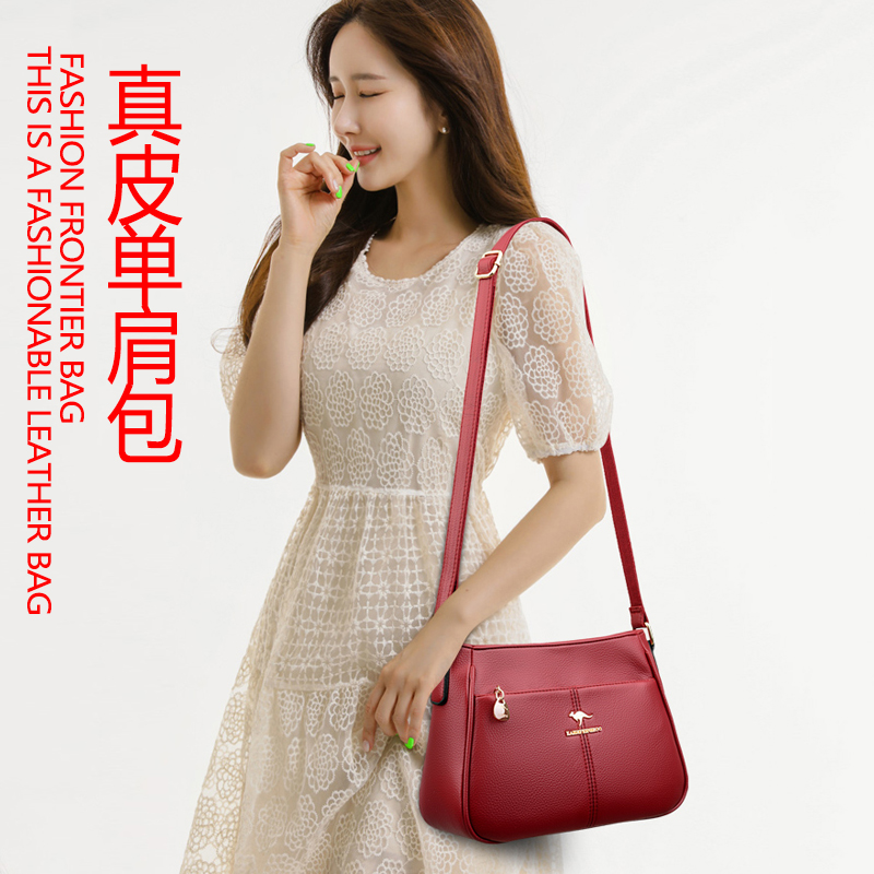 袋鼠真皮女包斜挎包女士2025新款小包妈妈包婆婆包单肩包牛皮百搭