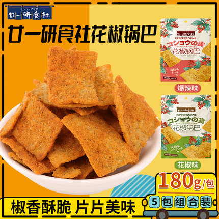【盒马直播间】廿一研食社花椒锅巴180g*5袋大包零食品爆辣锅巴