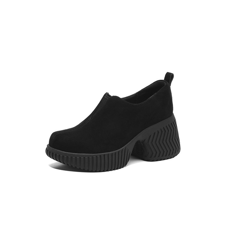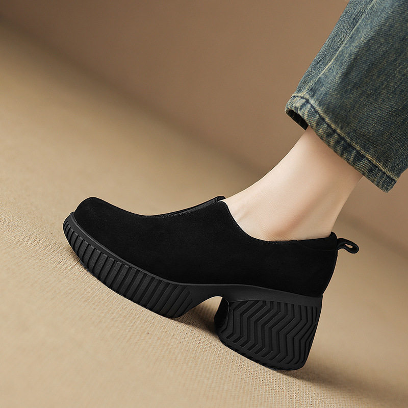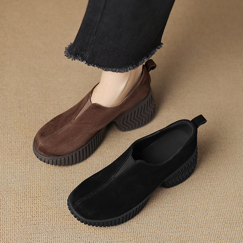 7.5cm厚底小皮鞋女真皮松糕乐福鞋2025新款秋季高跟坡跟懒人单鞋
