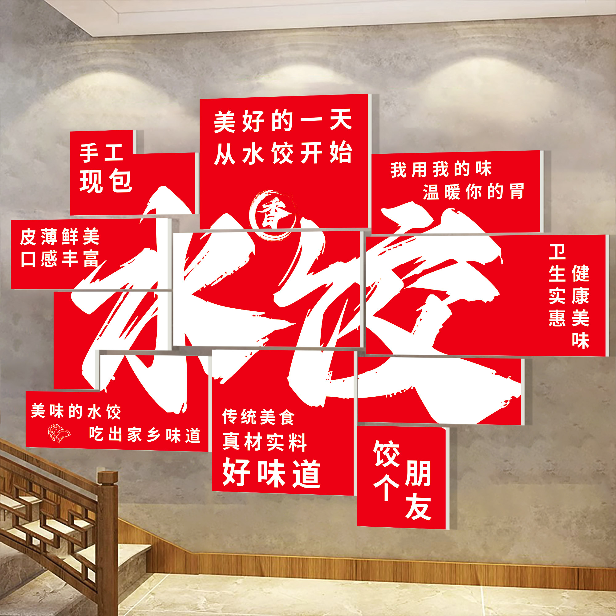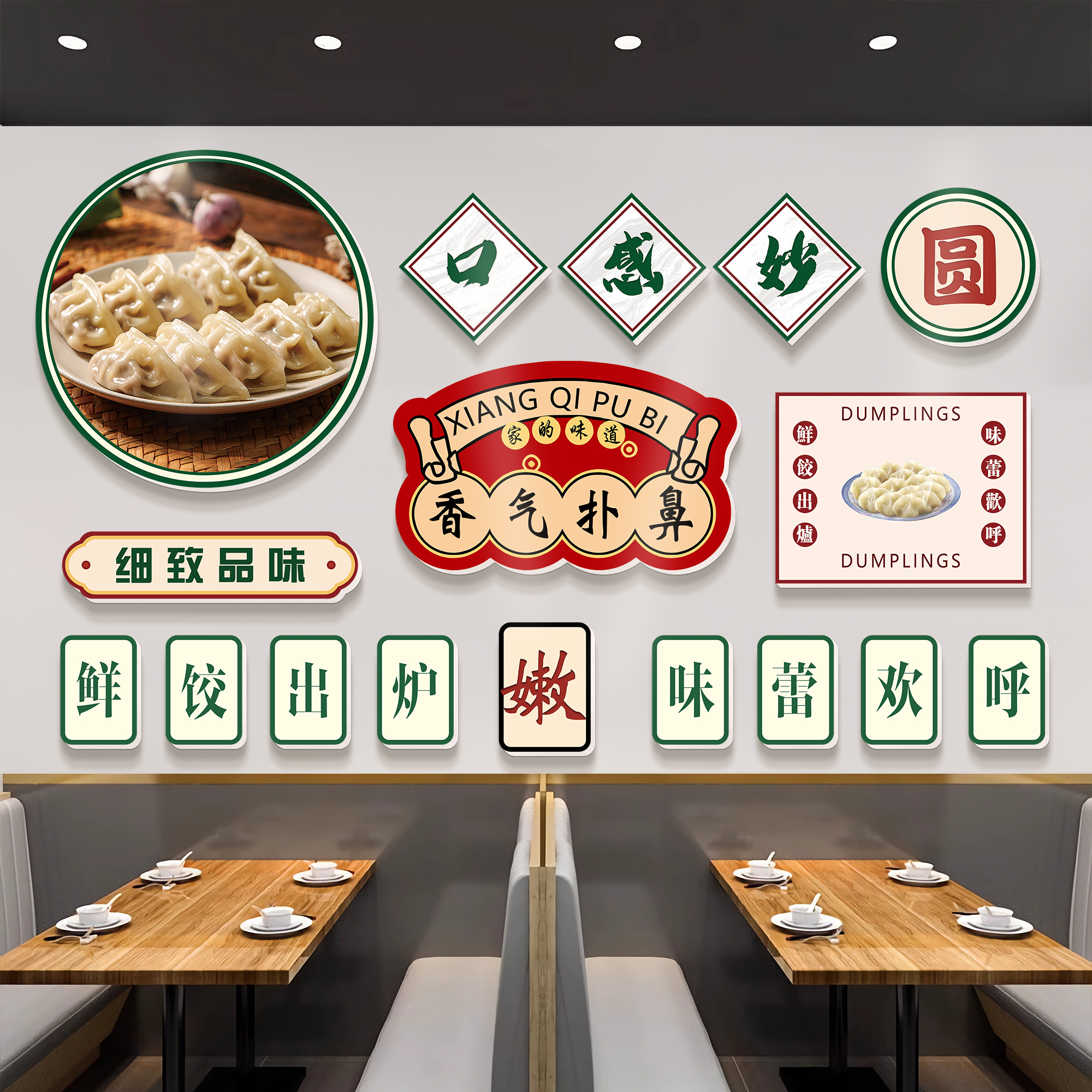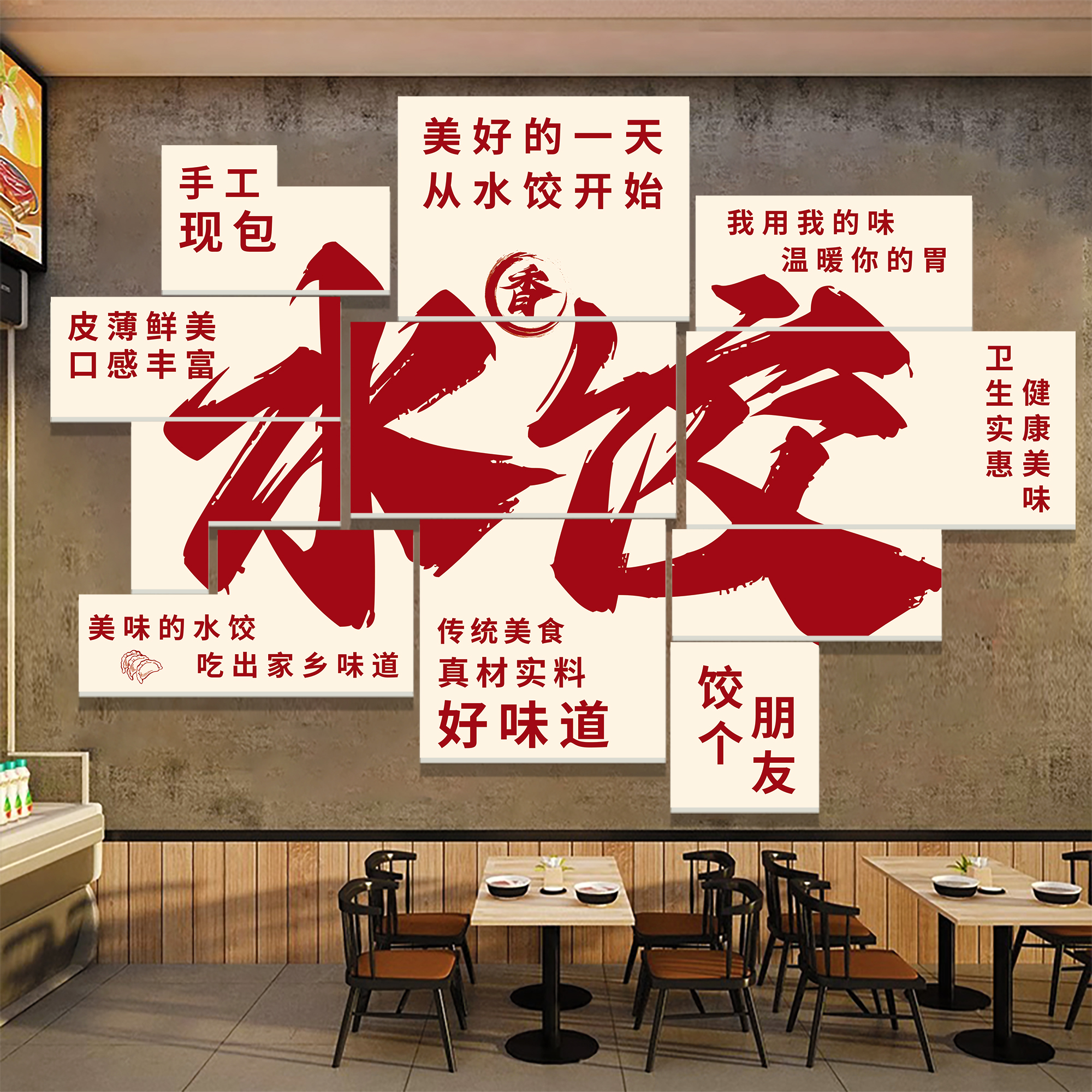 水饺馆墙面装饰创意挂画蒸饺子小吃饭店广告贴纸文化背景墙贴海报