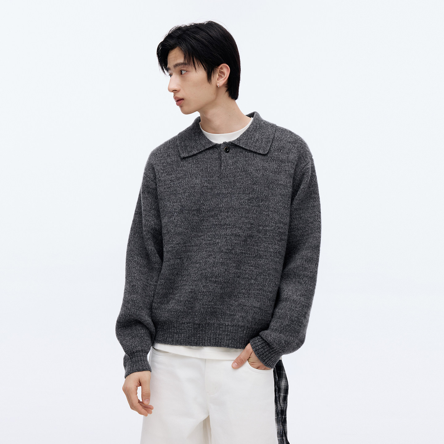 RESTICK 澳洲进口美丽诺长绒羊毛翻领毛衣可机洗中性POLO领针织衫