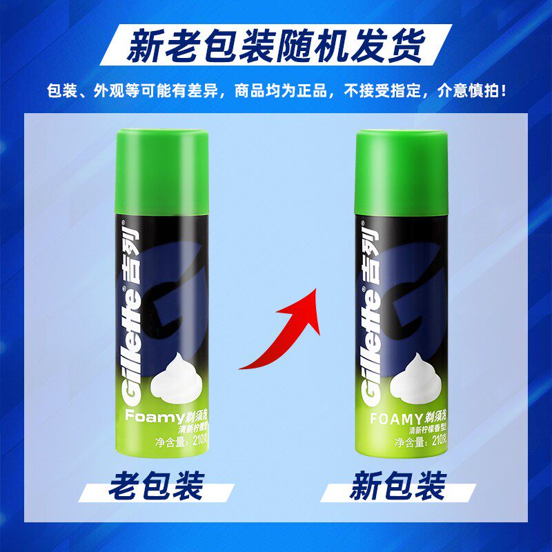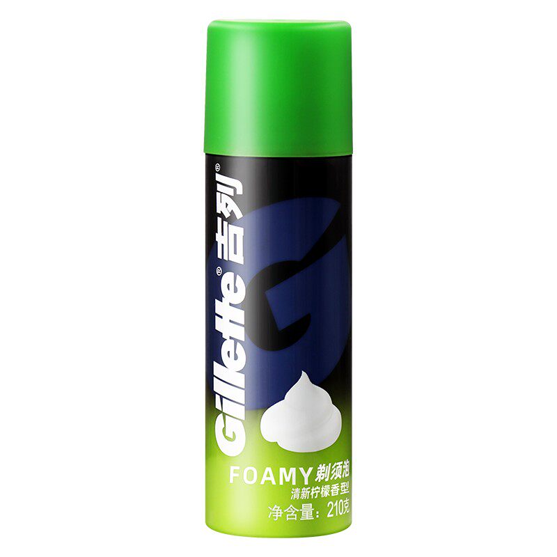 吉列剃须泡沫男士刮胡刀护理史莱姆清新柠檬型绿罐3只630g×1组