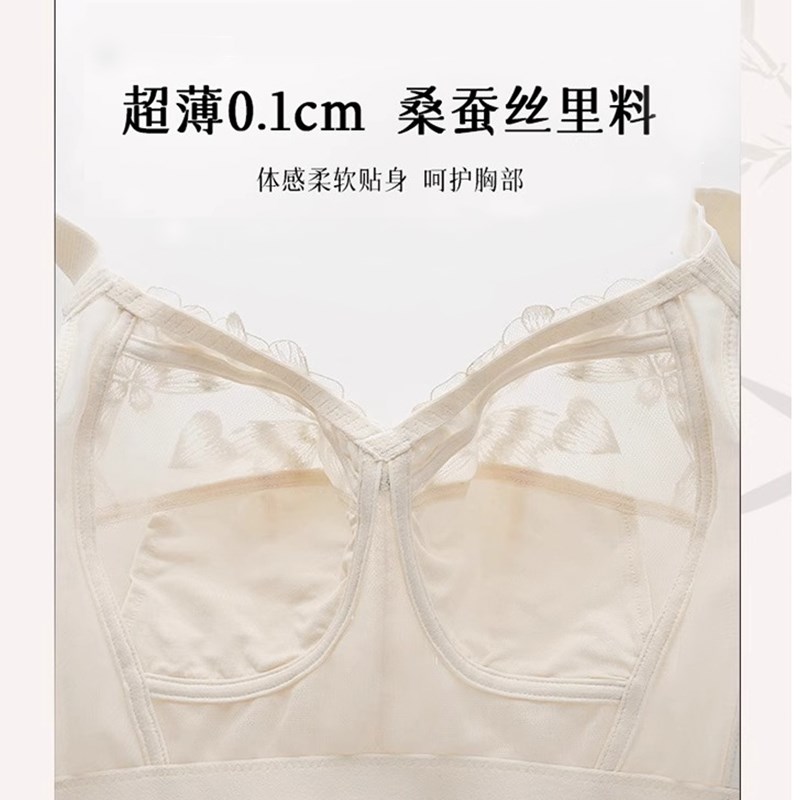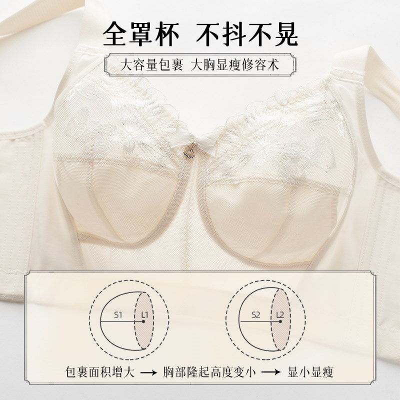 大胸显小a内衣女超薄款全罩杯收副乳防下垂聚拢无钢圈蕾丝大码文