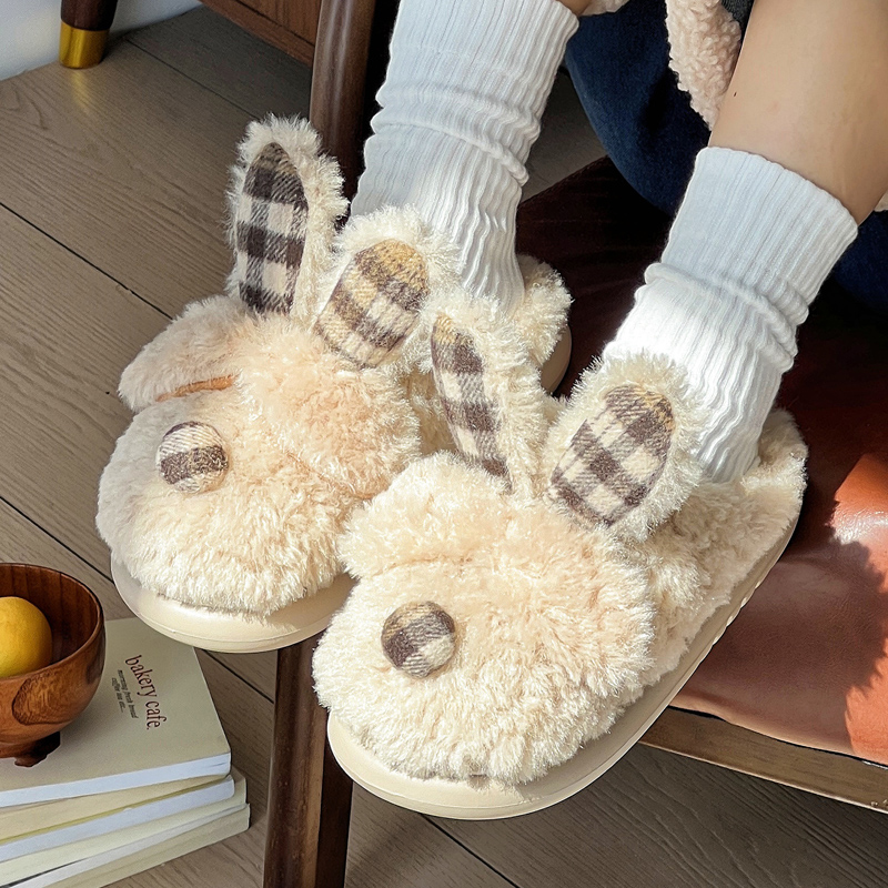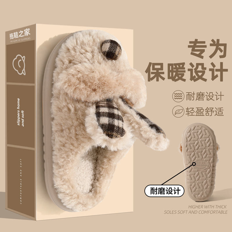流氓兔棉拖鞋女款2025新款秋冬季室内居家防滑保暖加绒厚毛毛鞋男