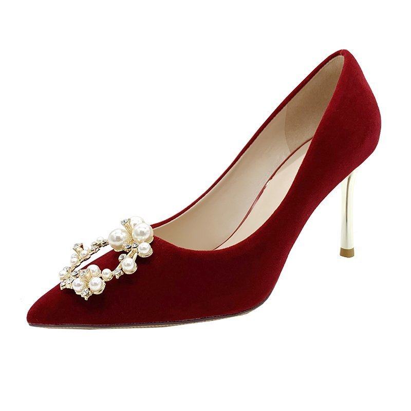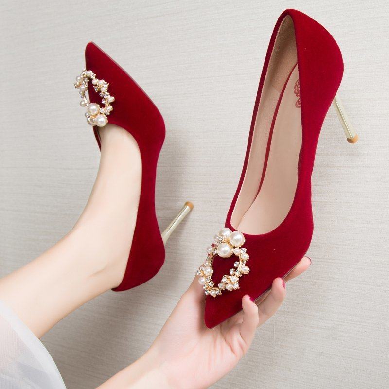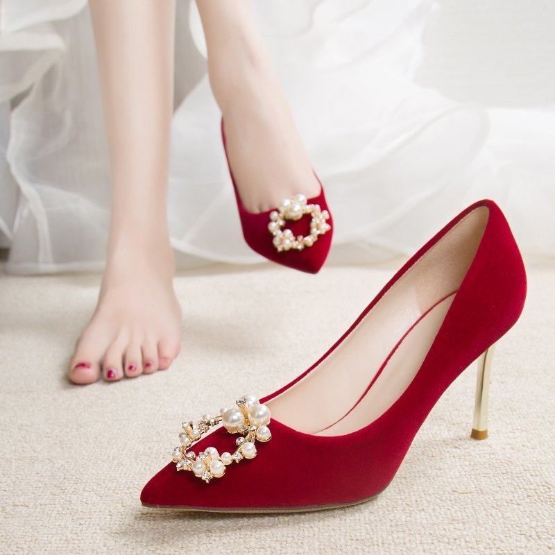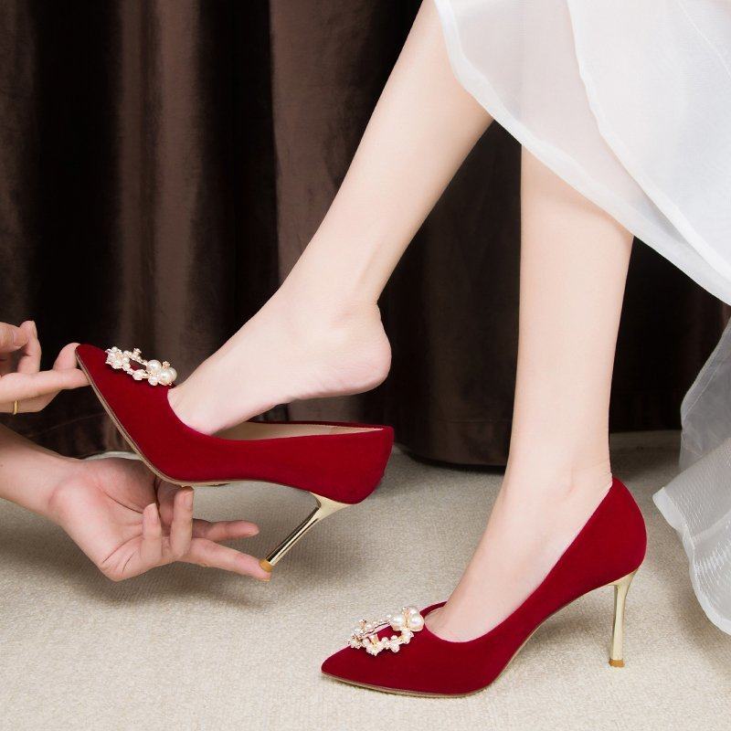 婚鞋女2024年冬季新款新娘鞋中式秀禾服红色高跟鞋主婚纱结婚鞋子