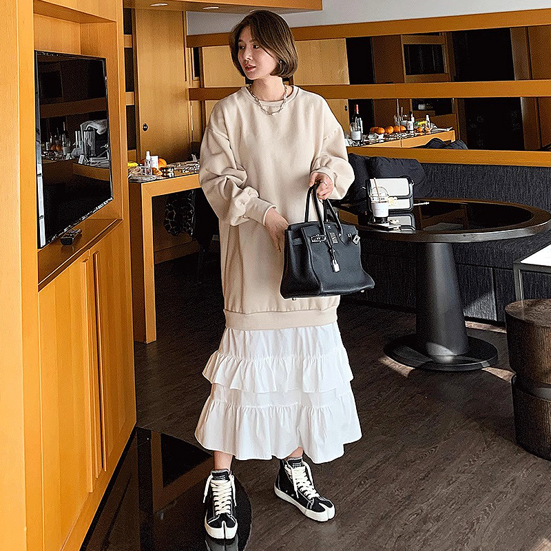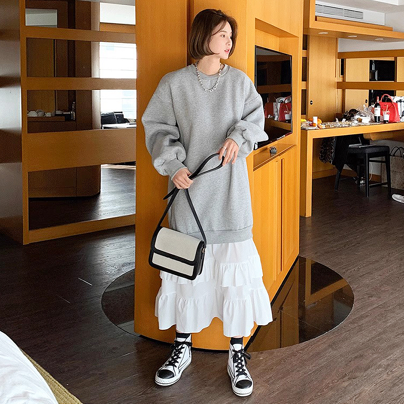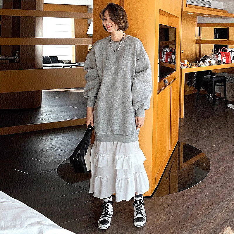 秋季荷叶边休闲宽松卫衣连衣裙女