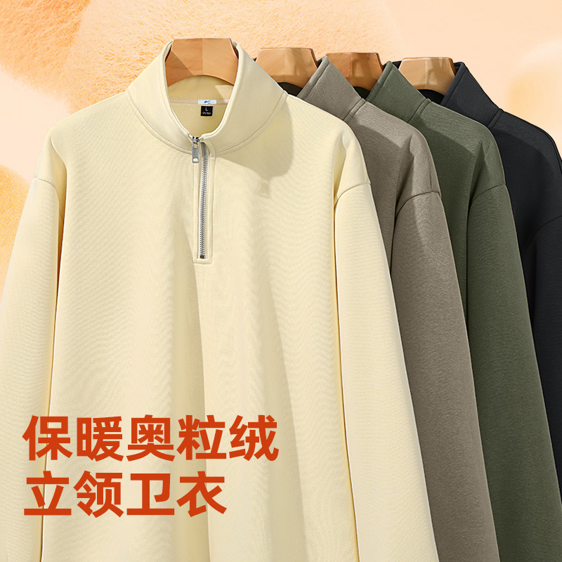 回力立领男士卫衣秋冬季加厚奥粒绒套头衫男生简约纯色长袖外套A