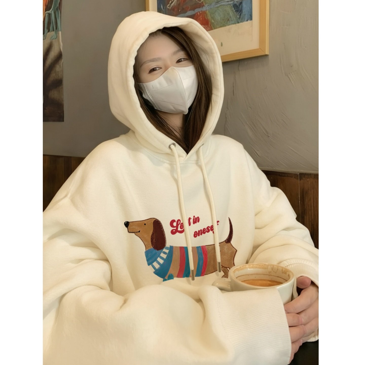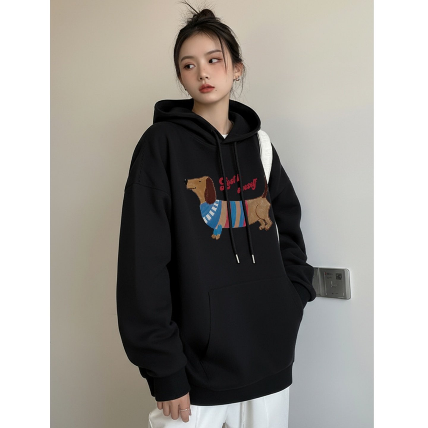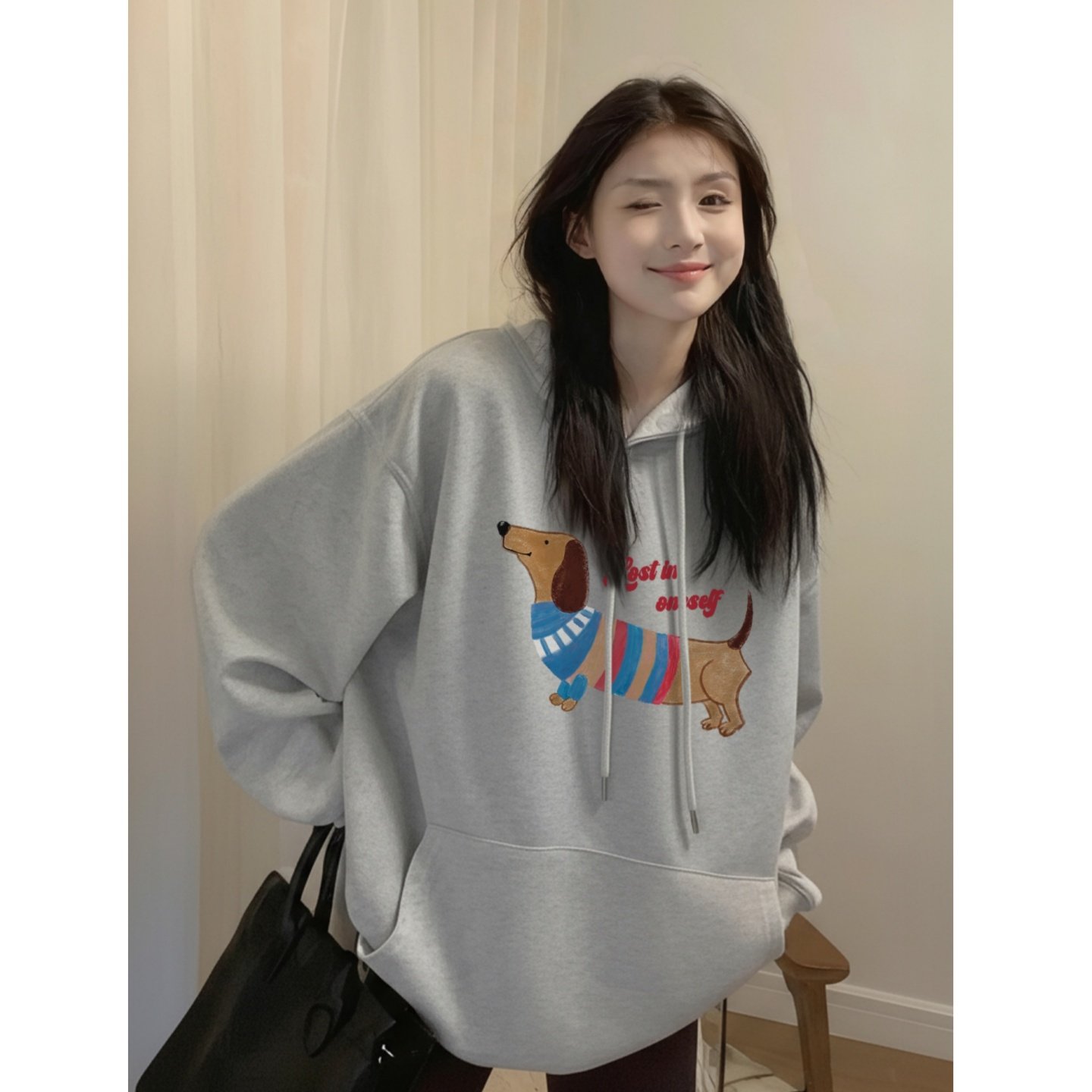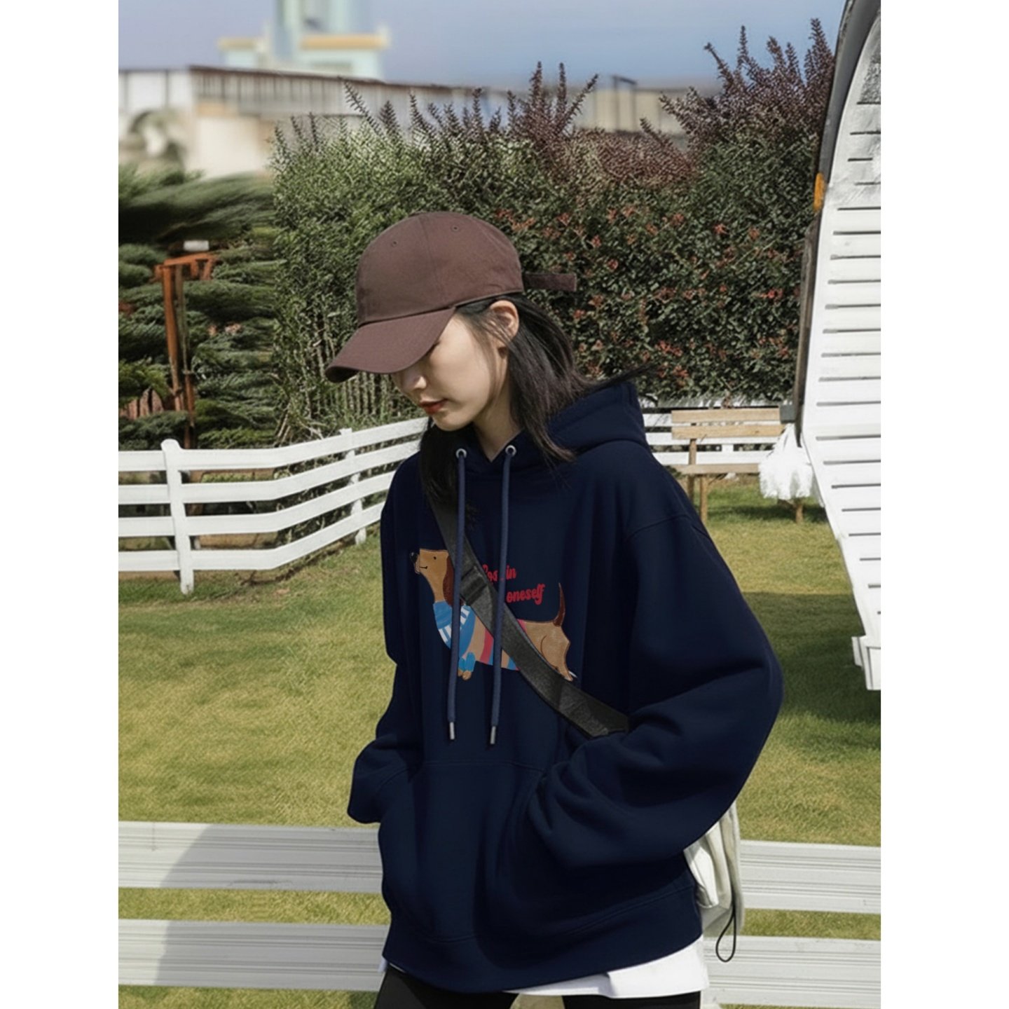 加绒连帽卫衣女2025秋冬保暖加厚藏蓝色巨好看长袖上衣宽松慵懒风