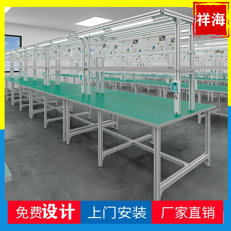铝型材防静电生产线 双边工作台2米带双灯架包装流水线工作台桌