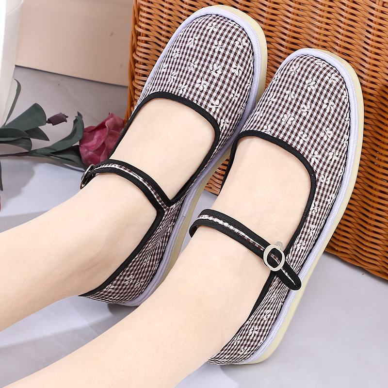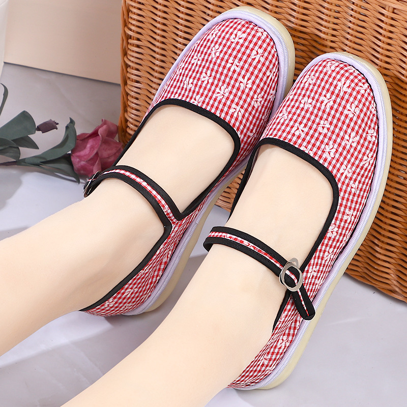 春夏秋冬季北京中老年人千层牛筋白平底格子花布鞋女上班工作民族