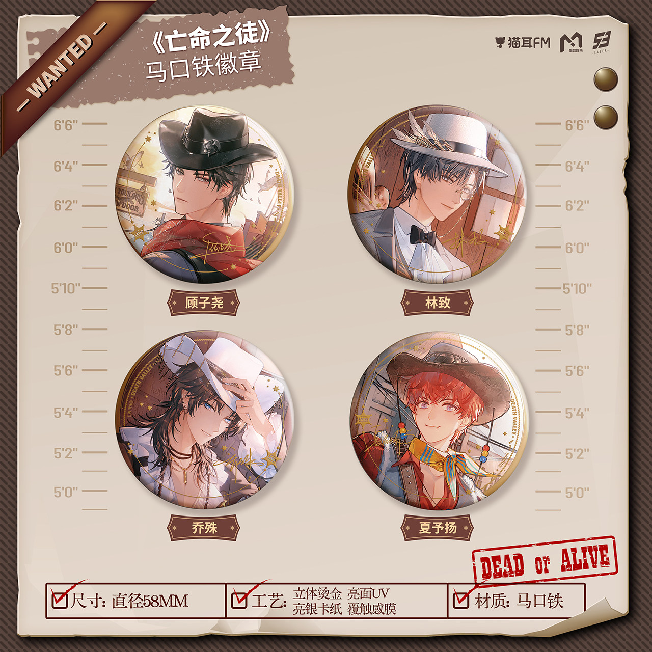 预售 猫耳FM LASER 亡命之徒系列周边 徽章色纸镭射票立牌马克杯