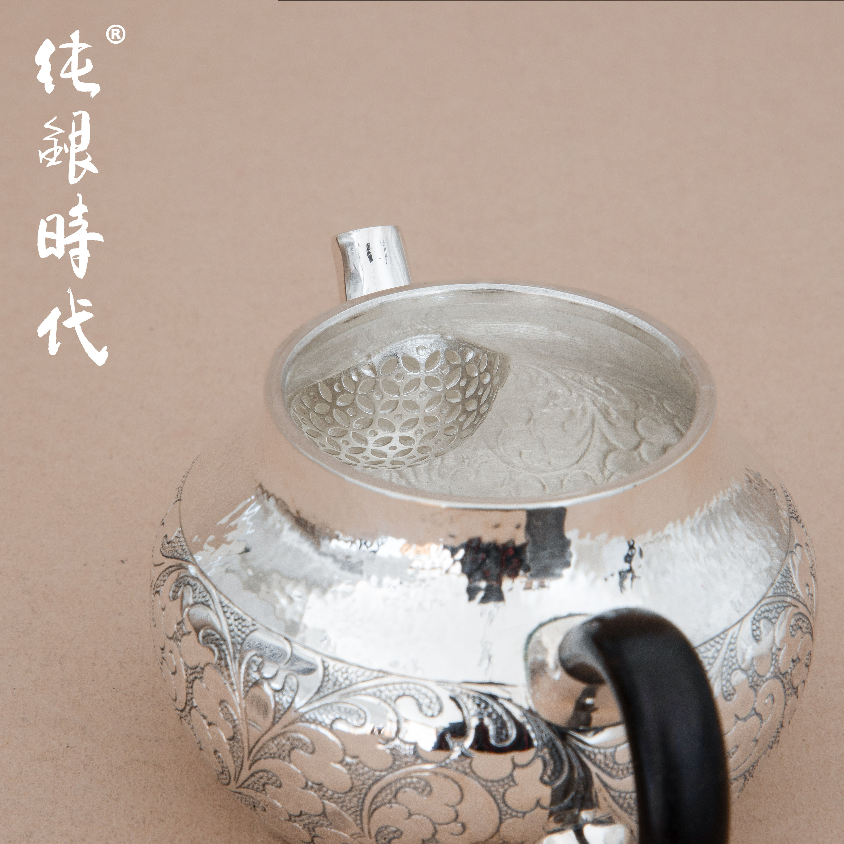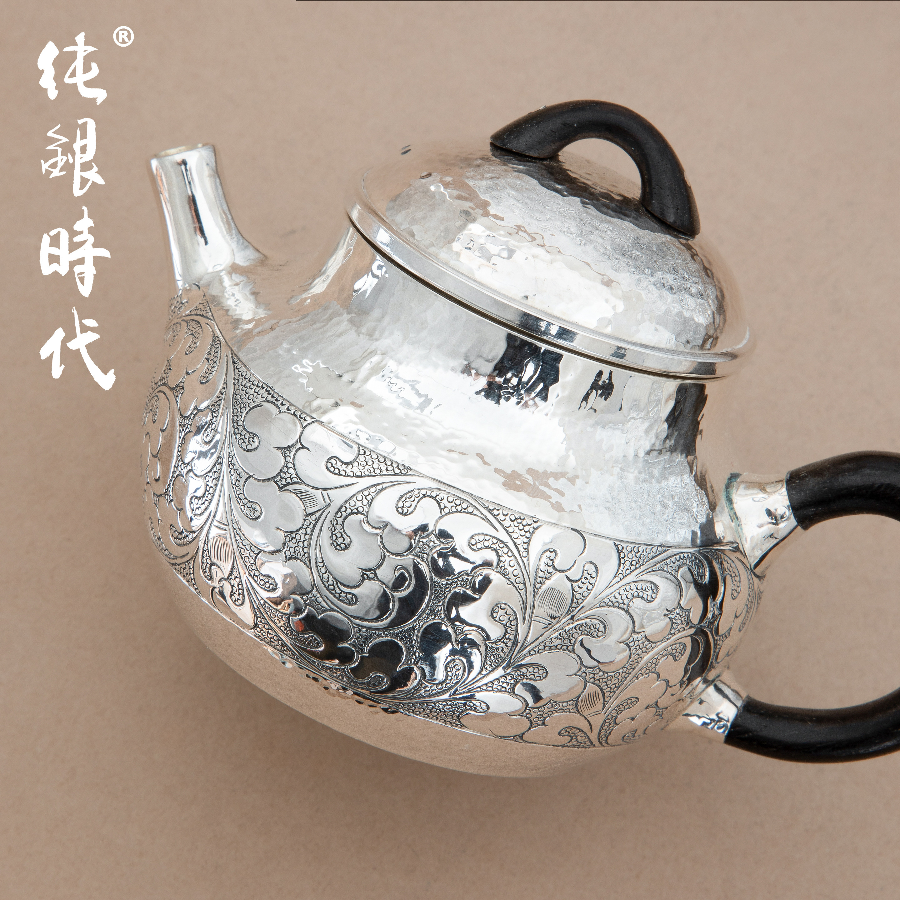 纯银时代手工錾刻缠枝纯银泡茶壶