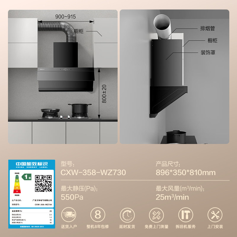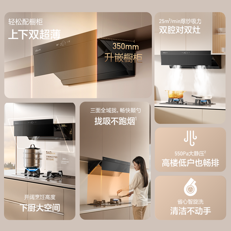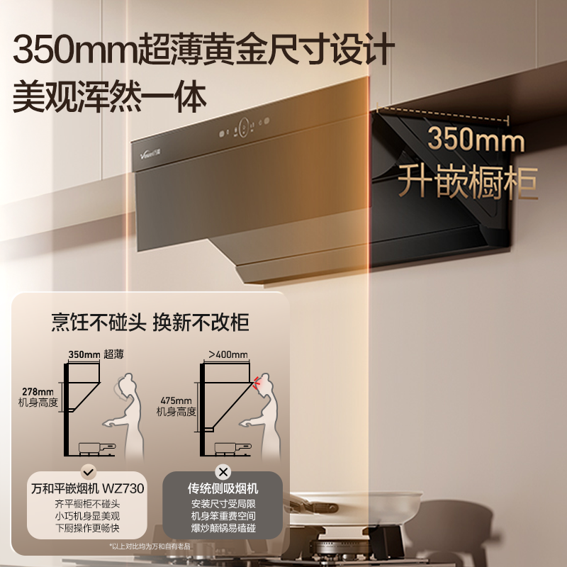 [品牌补贴]万和小双翼超薄烟机家用厨房大吸力WZ730