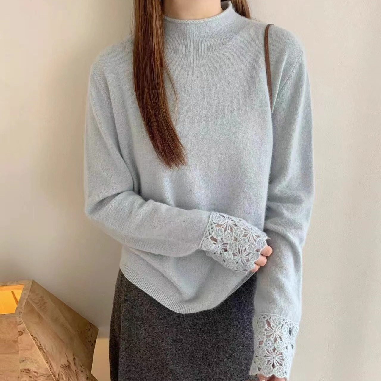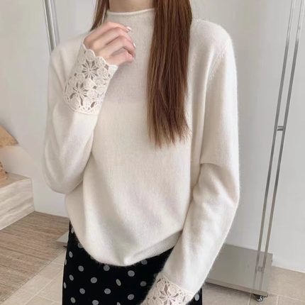 半高领蜜熊绒毛衣女套头2025秋冬新款韩系时尚气质镂空羊毛针织衫