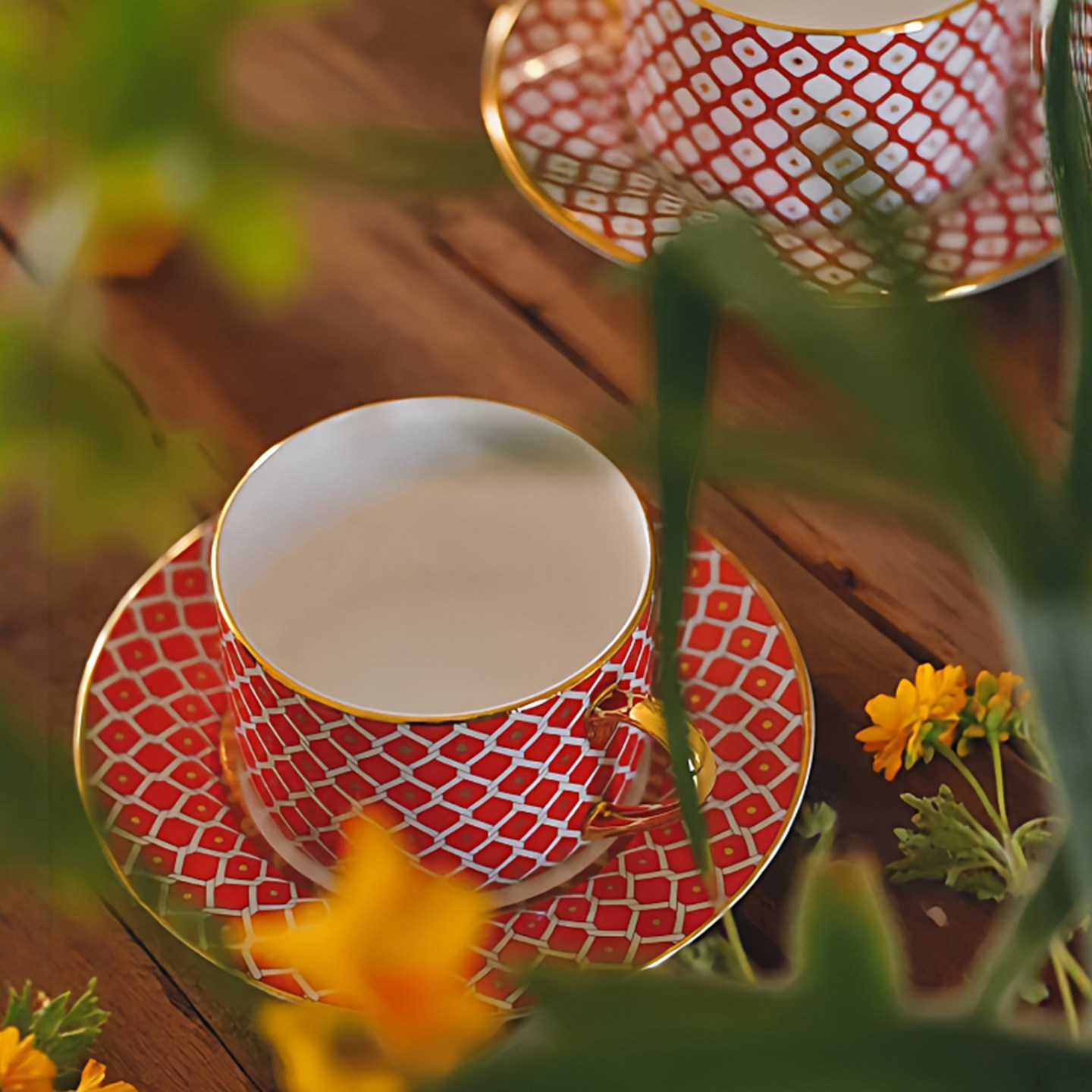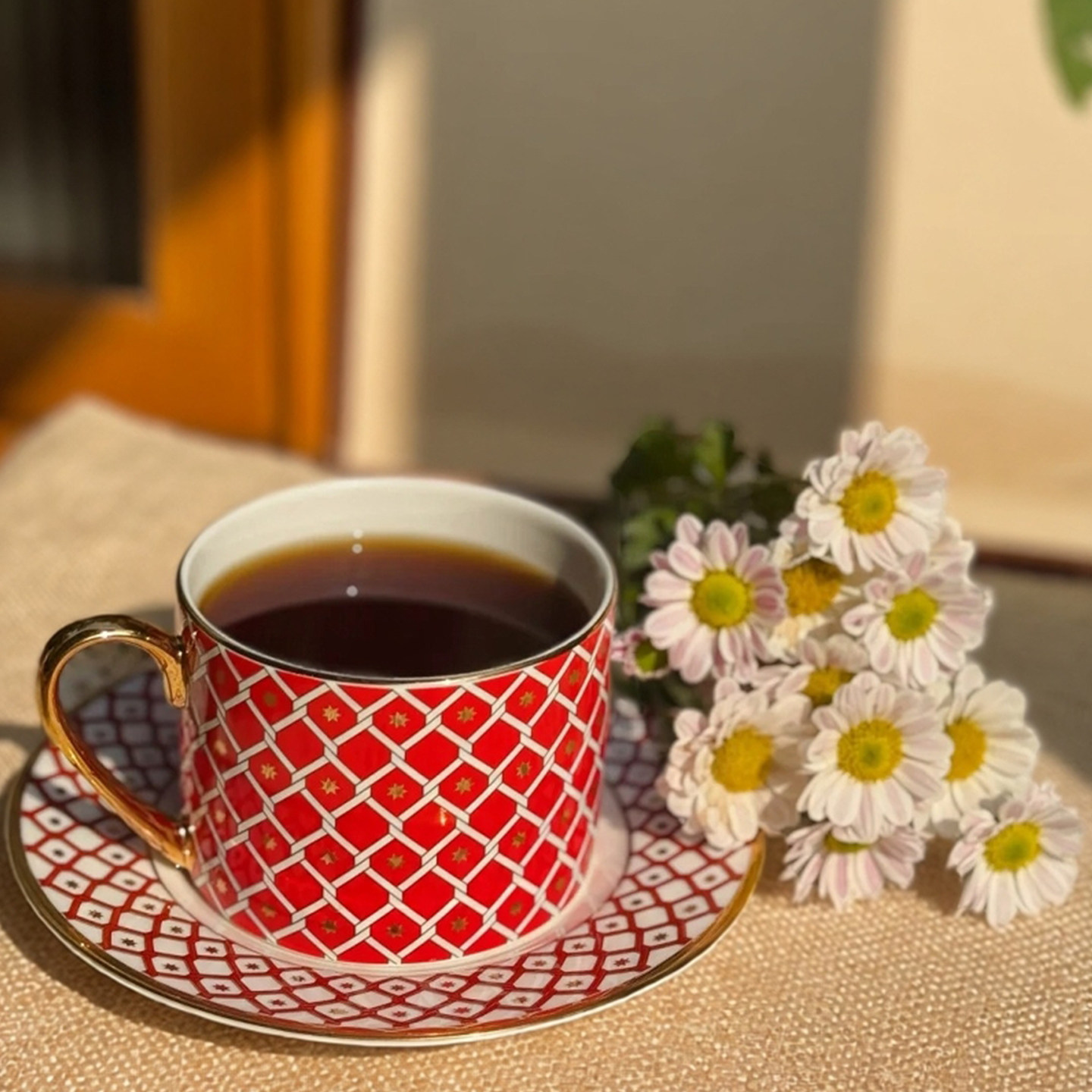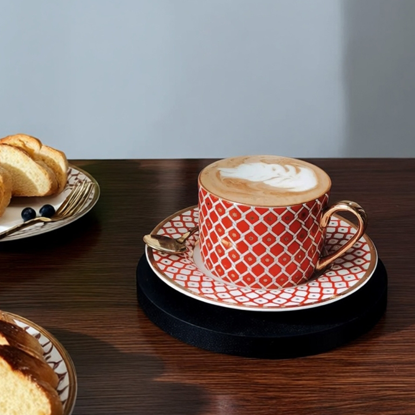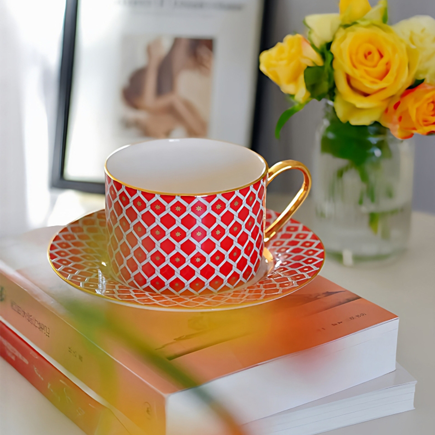 SkyBloom诗客星韵骨瓷咖啡杯菱形几何图案轻奢礼物高档情侣杯套装