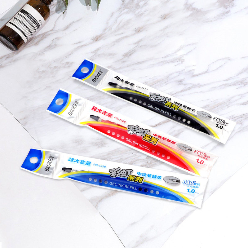 宝克中性笔芯大容量中性笔替芯PS1920墨水1.0mm签字笔芯走珠笔芯黑红蓝色水性笔芯适用PC1848水笔批发速干笔
