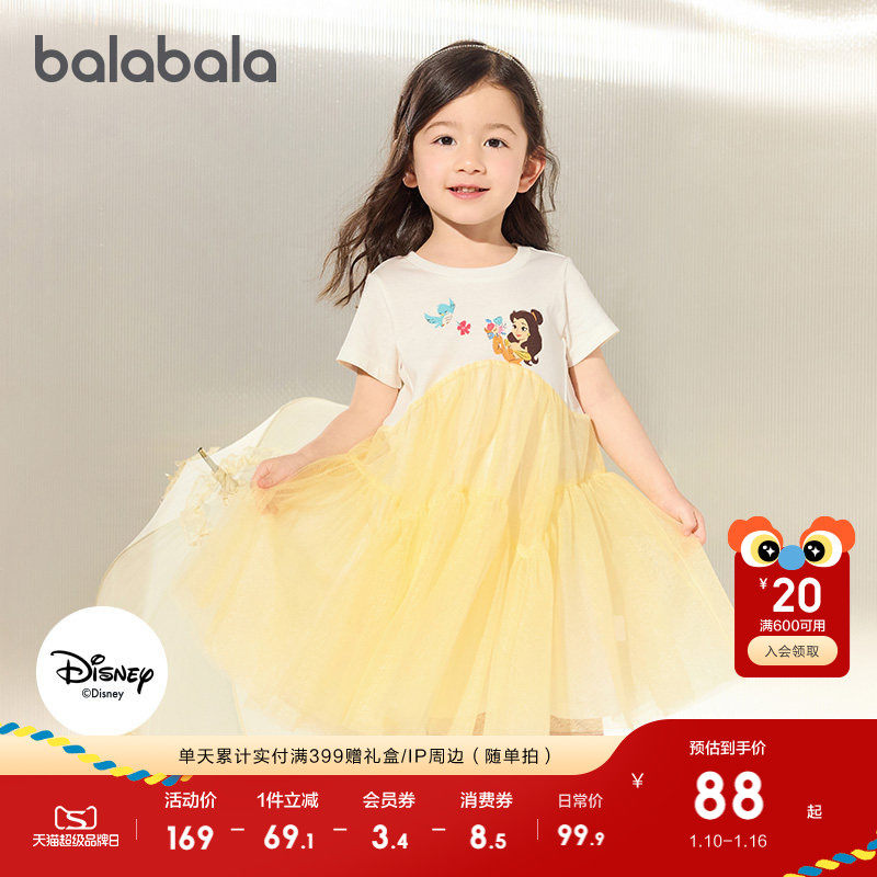 【迪士尼IP】巴拉巴拉宝宝公主裙艾莎连衣裙女童网纱裙2025夏新款