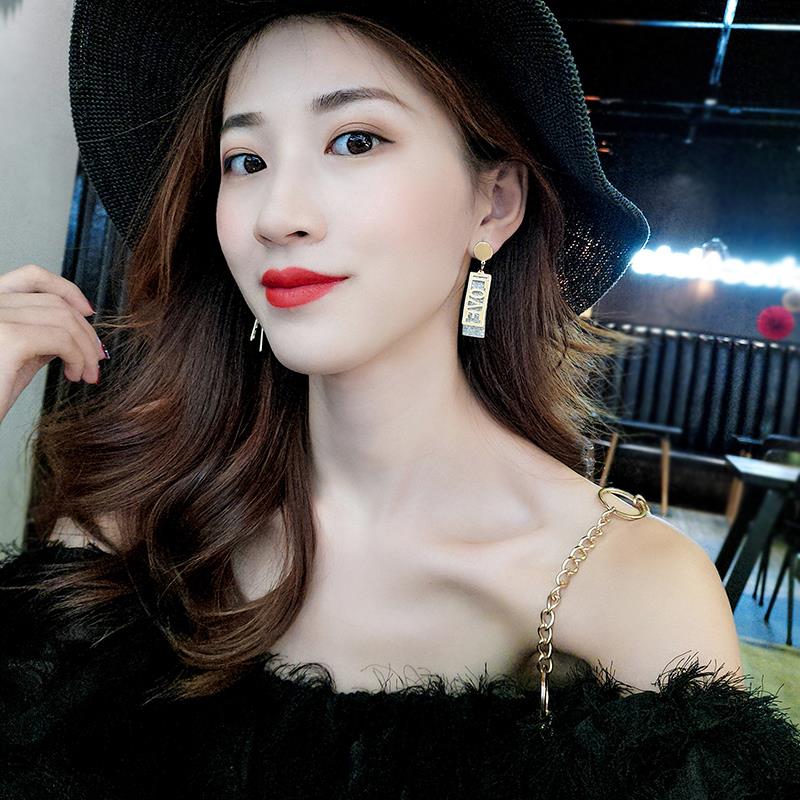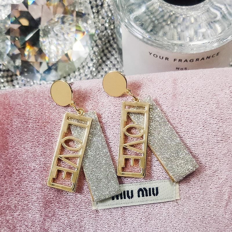 复古亮片love冷淡风耳环女韩国气质个性百搭夸张耳坠潮人长款耳钉