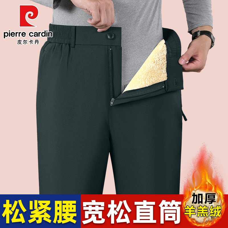 皮尔卡丹男士棉裤冬季加绒加厚高腰宽松休闲裤防风防寒外穿保暖裤