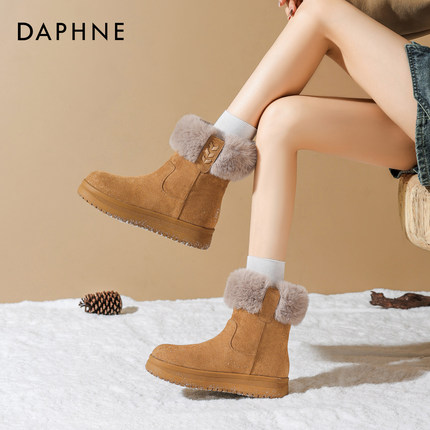达芙妮厚底雪地靴加绒棉鞋