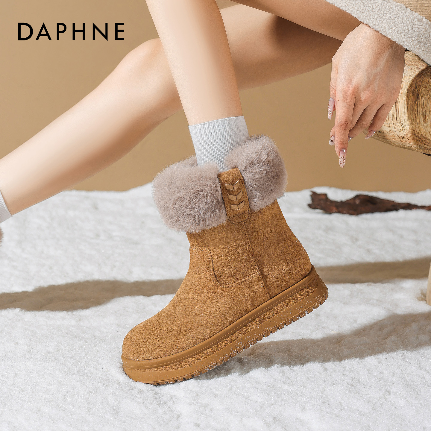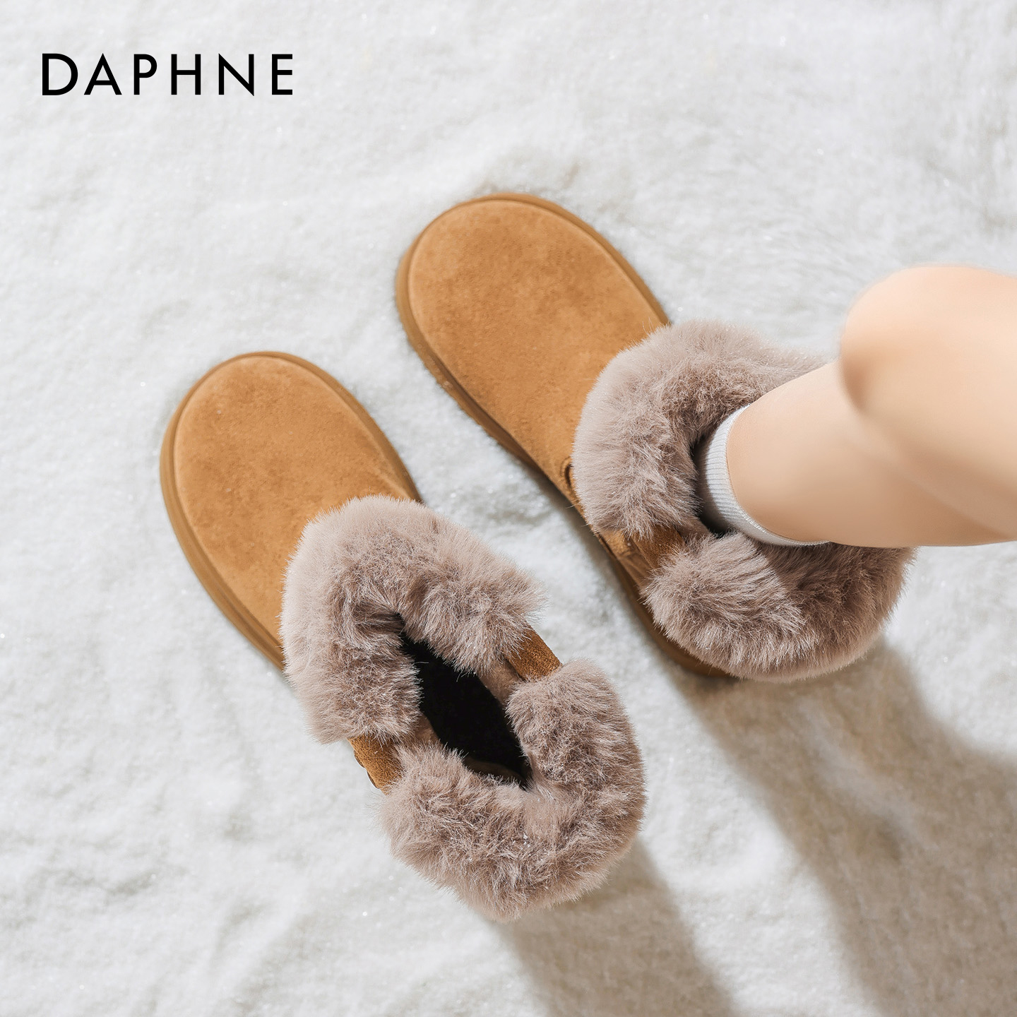 达芙妮厚底雪地靴女2025新款冬季加绒加厚东北毛毛棉鞋面包短靴子