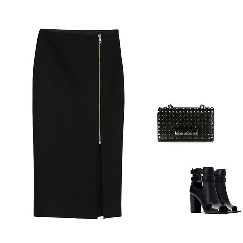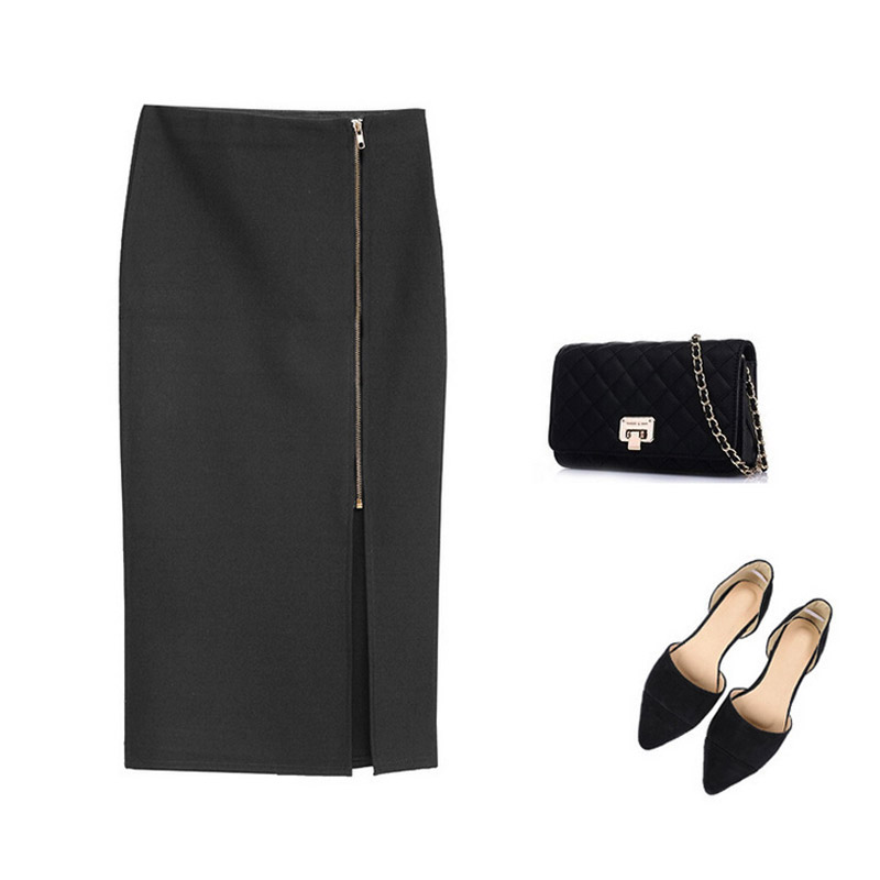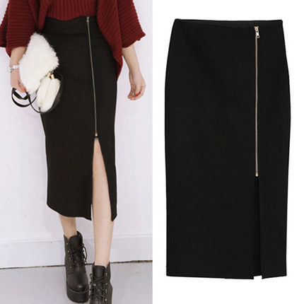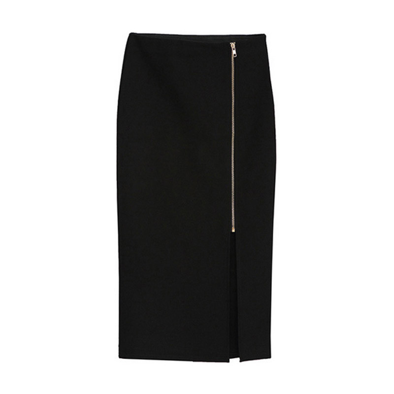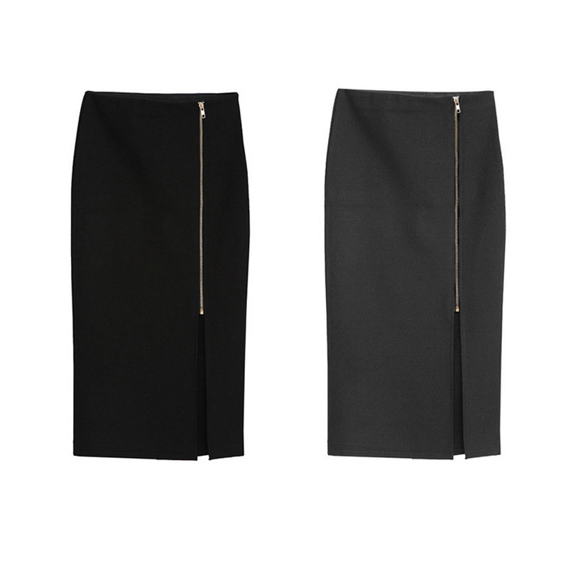 春款棉拉链前侧开叉过膝半身裙一步裙高腰包臀修身显瘦中长款裙女