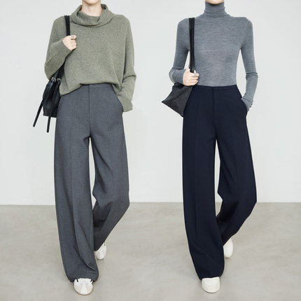 夏莫卡高智灰色西装裤女新款极简主义窄版阔腿天丝羊毛直筒裤9733