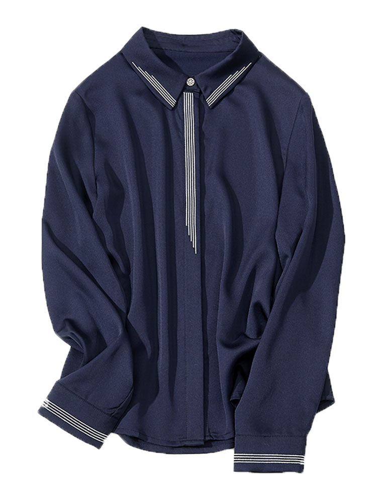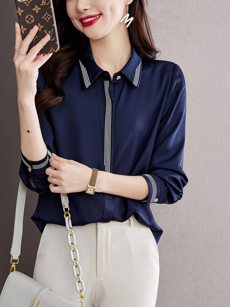 女装2025年秋装新款长袖女士气质雪纺衬衫高级感休闲上衣蓝色衬衣