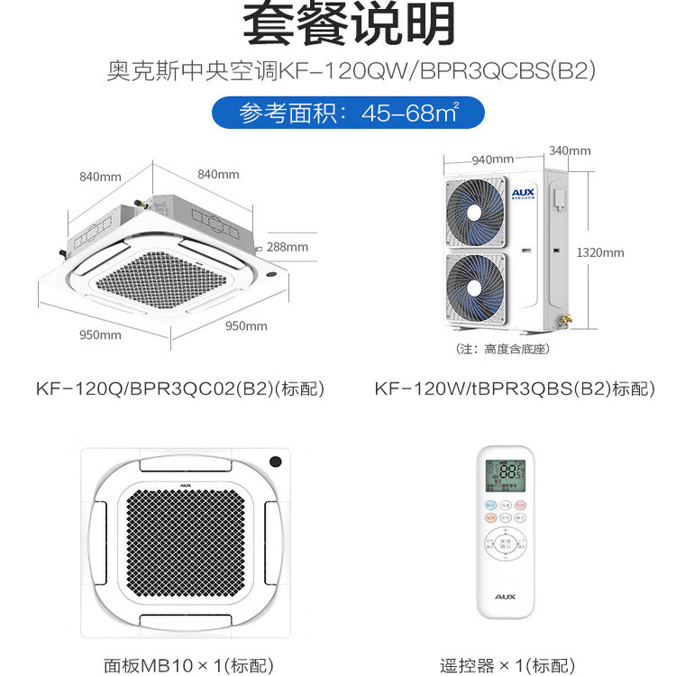 奥克斯中央空调大5匹二级单冷商用天花机KF-120QW/BPR3QCBS(B2)