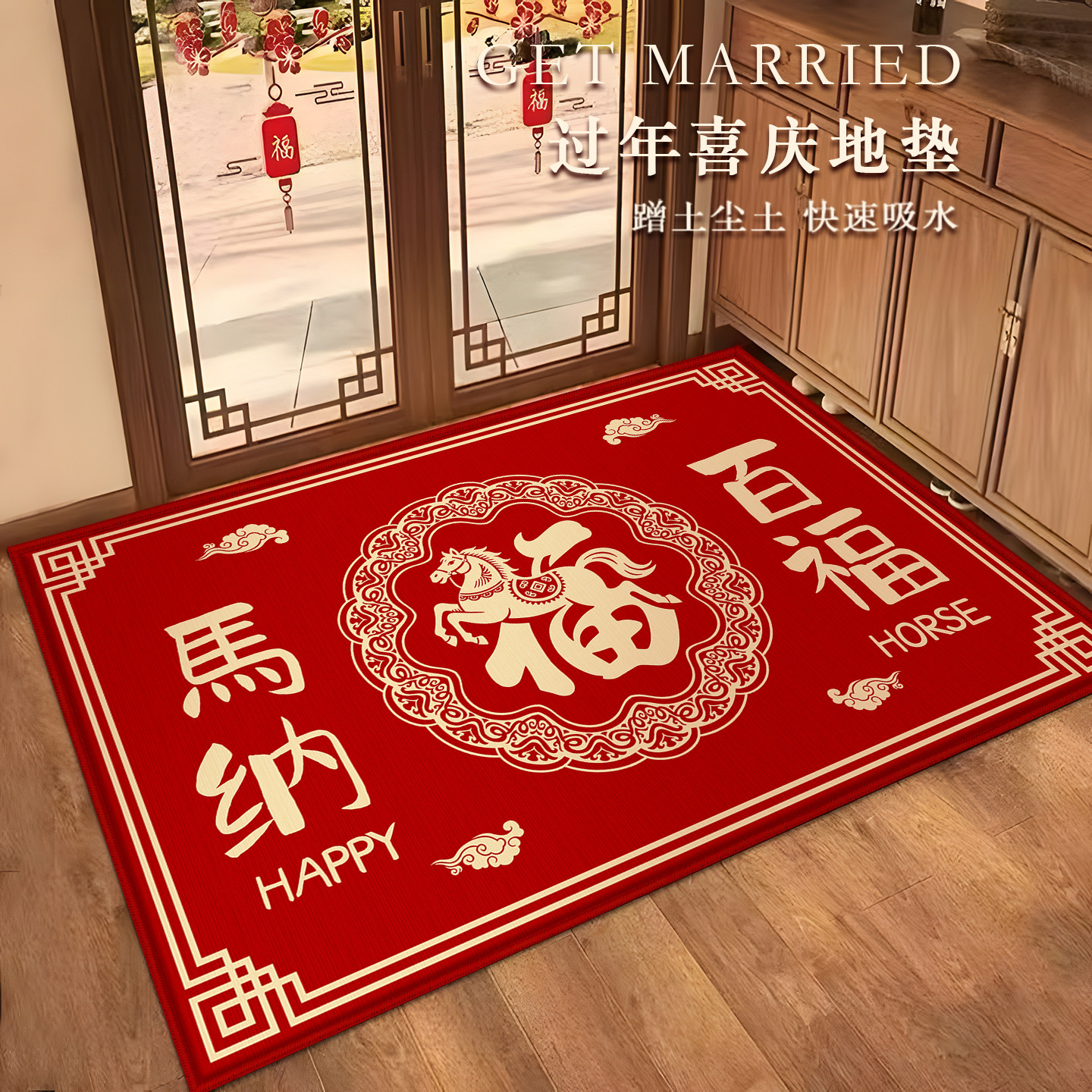 马年地垫硅藻泥2026新年入户门垫喜庆进门脚垫家用门口防滑垫子