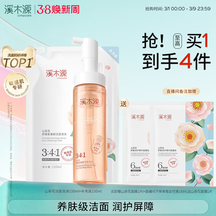 溪木源山茶花洁面泡沫洗面奶氨基酸慕斯敏感肌温和清洁青少年男女