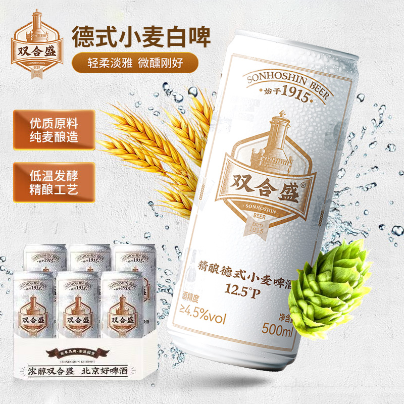新日期首发北京双合盛德式小麦啤酒原浆高度数老字号500ml*12罐