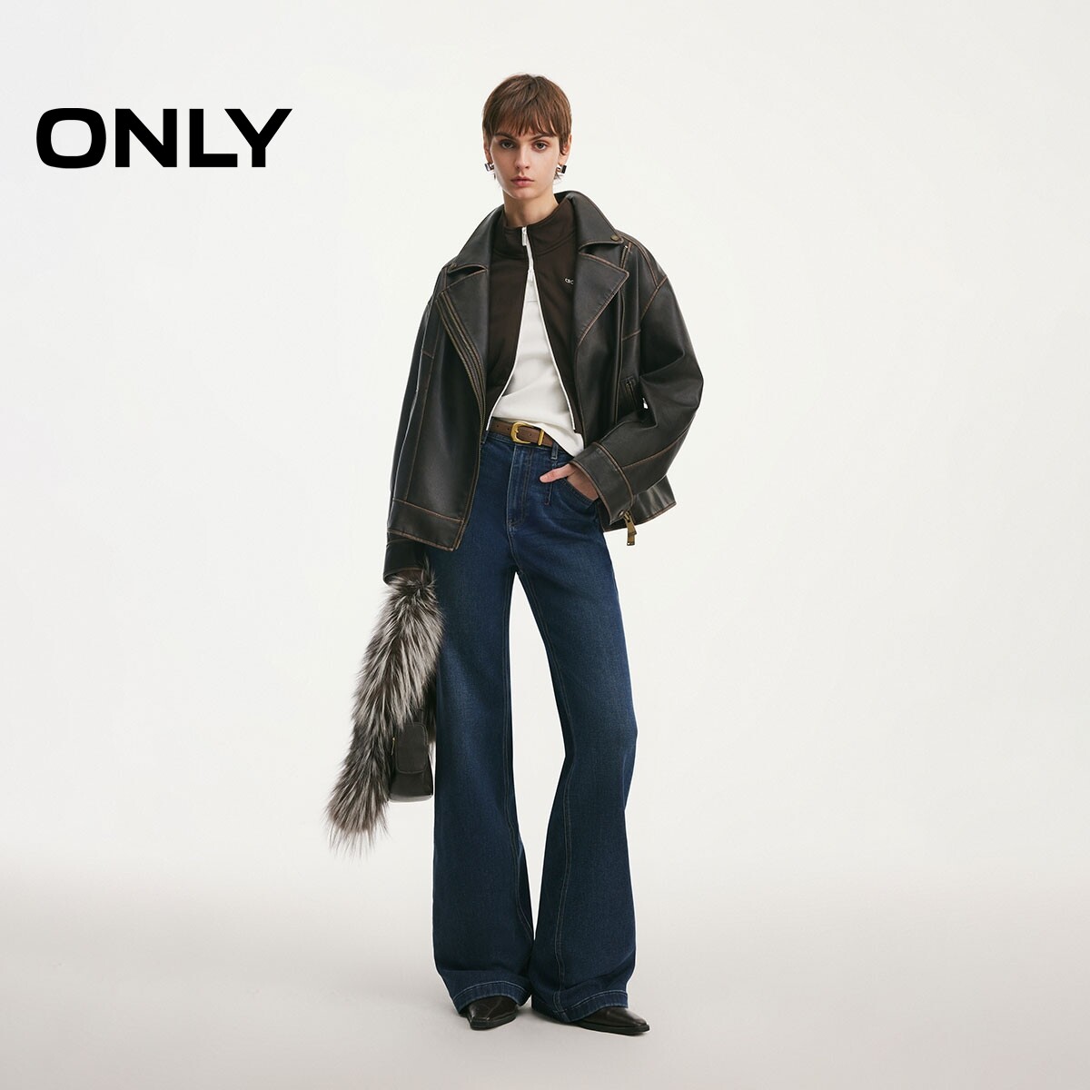 ONLY2026春季新款复古水洗设计高腰显瘦显高长裤喇叭裤牛仔裤女