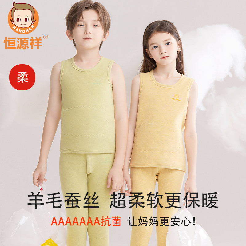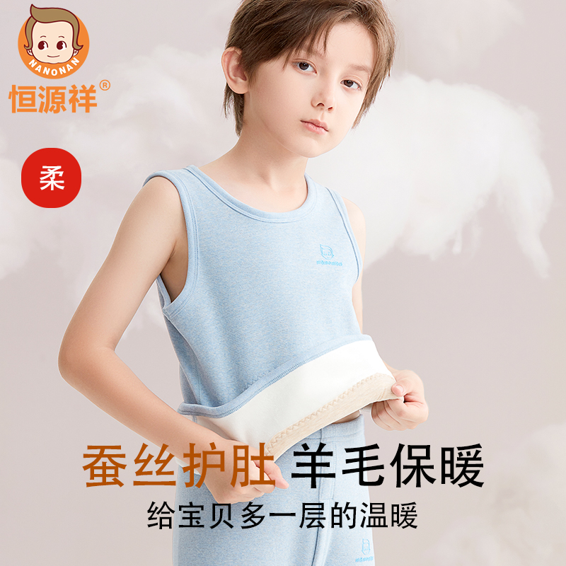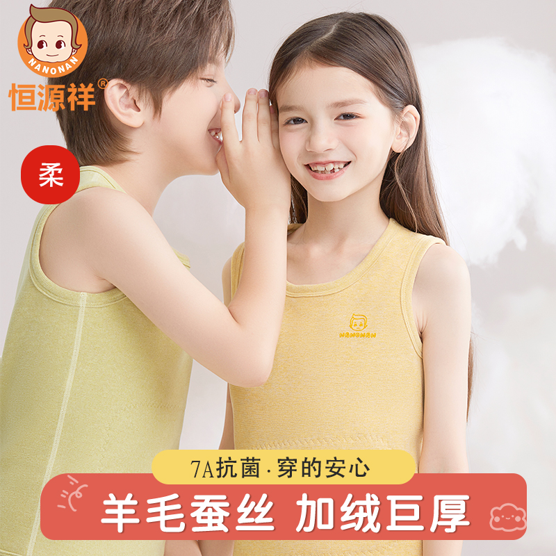 恒源祥儿童背心男女童羊毛蚕丝加绒加厚吊带中大童无袖保暖内衣冬