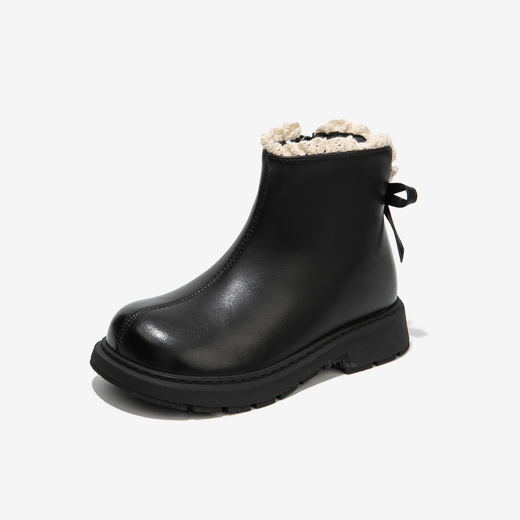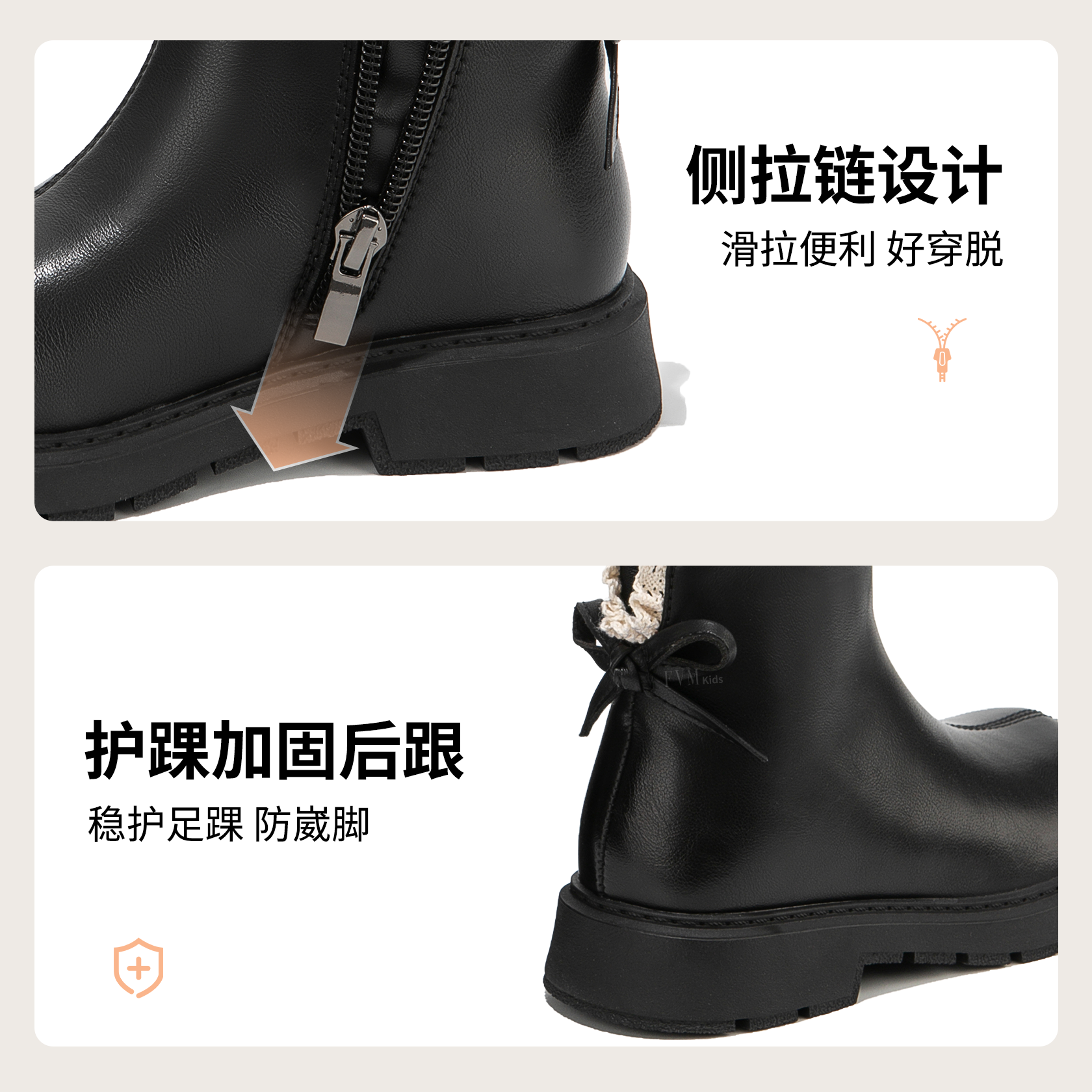 真皮女童鞋子秋冬新款2025小女孩蝴蝶结公主靴洋气女宝中大童短靴