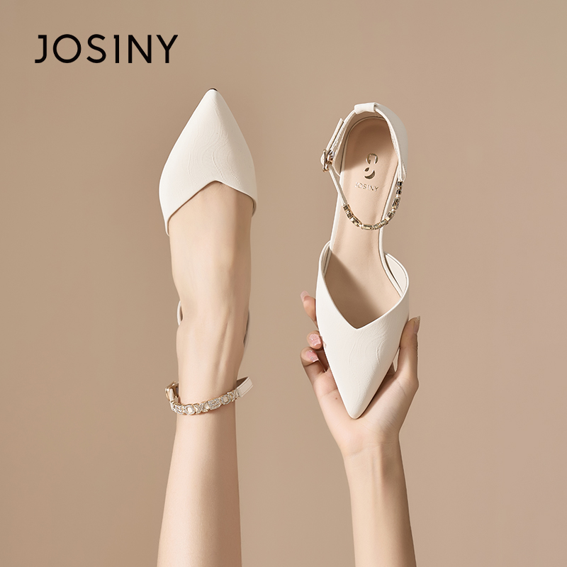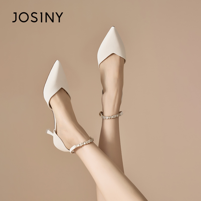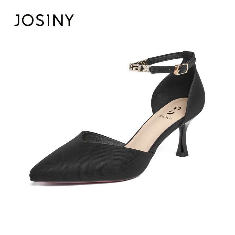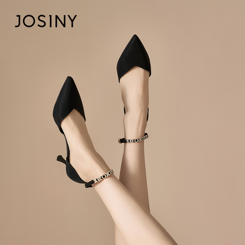 卓诗尼高跟鞋女2025春夏新款一字扣气质百搭中空尖头细跟单鞋