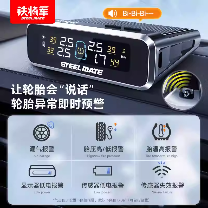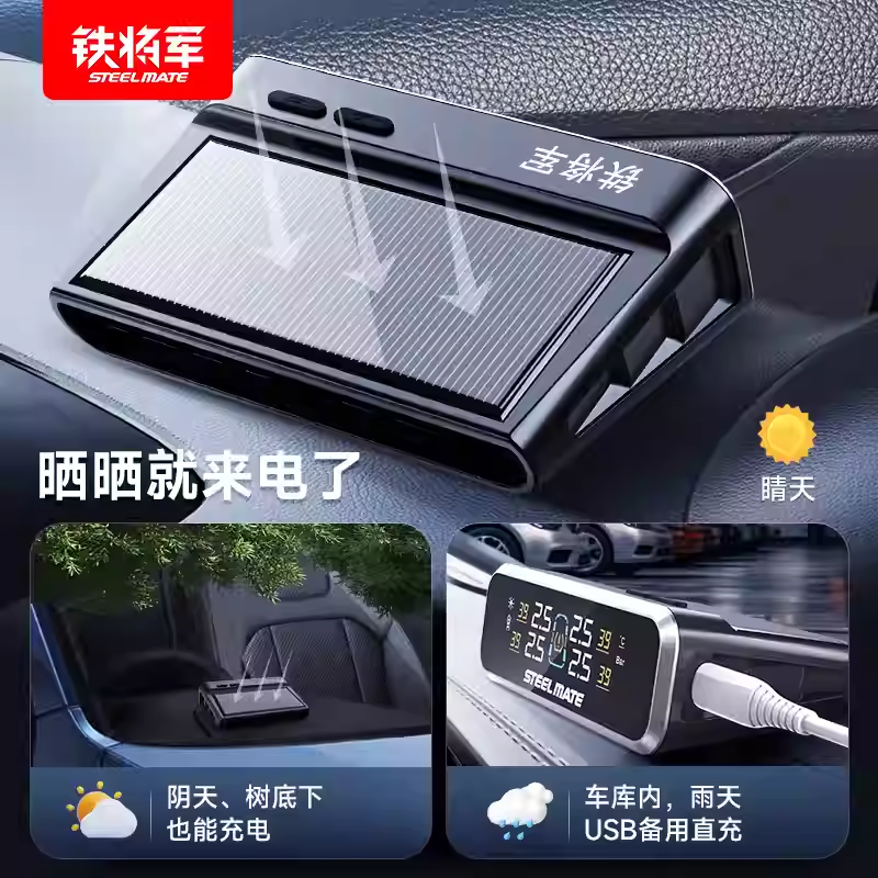 铁将军E3胎压监测器升级传感器内置汽车无线太阳能高精度轮胎检测