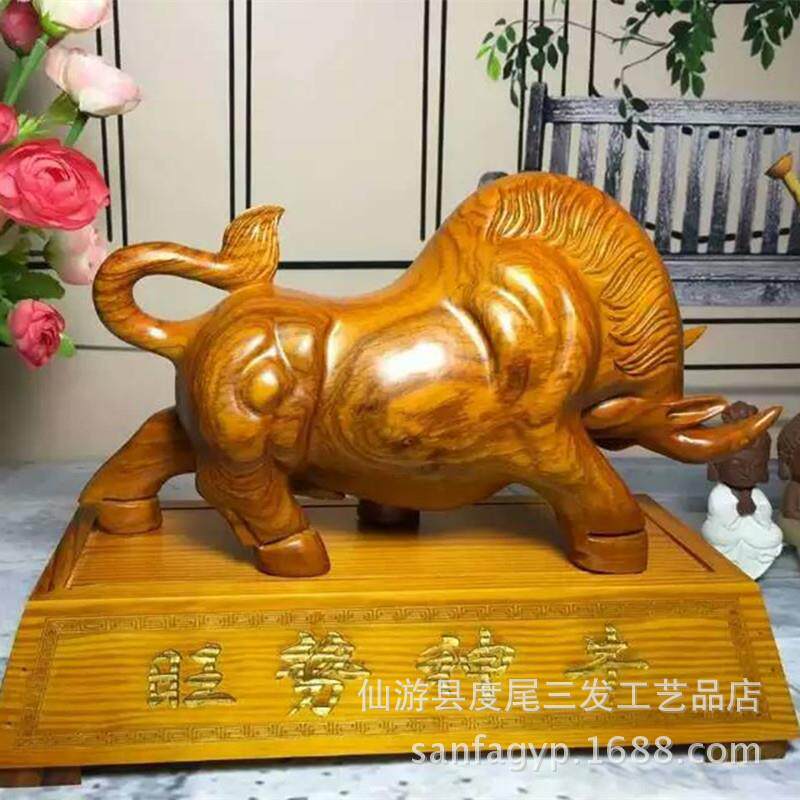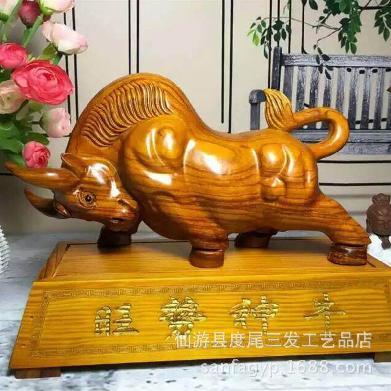 旺势神牛木雕风水摆件动物生肖牛气冲天华尔街牛股市开业鸿运