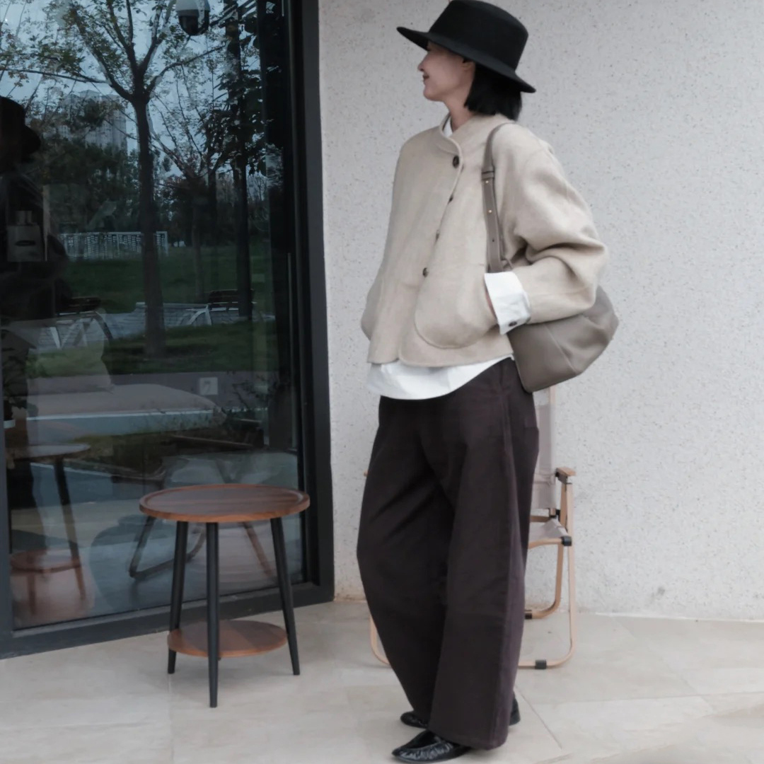 【80羊毛+20莱赛尔!】秋冬偏襟小立领短款设计感毛呢大衣外套女