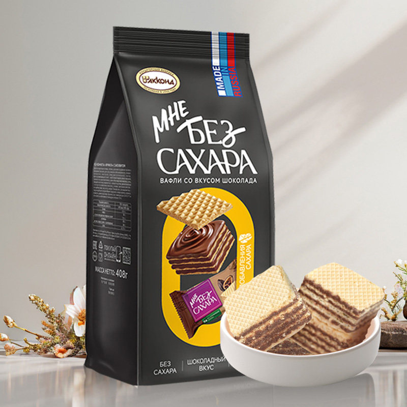 俄罗斯进口阿孔特无蔗糖威化饼干纯可可牛奶网红休闲零食健身食品