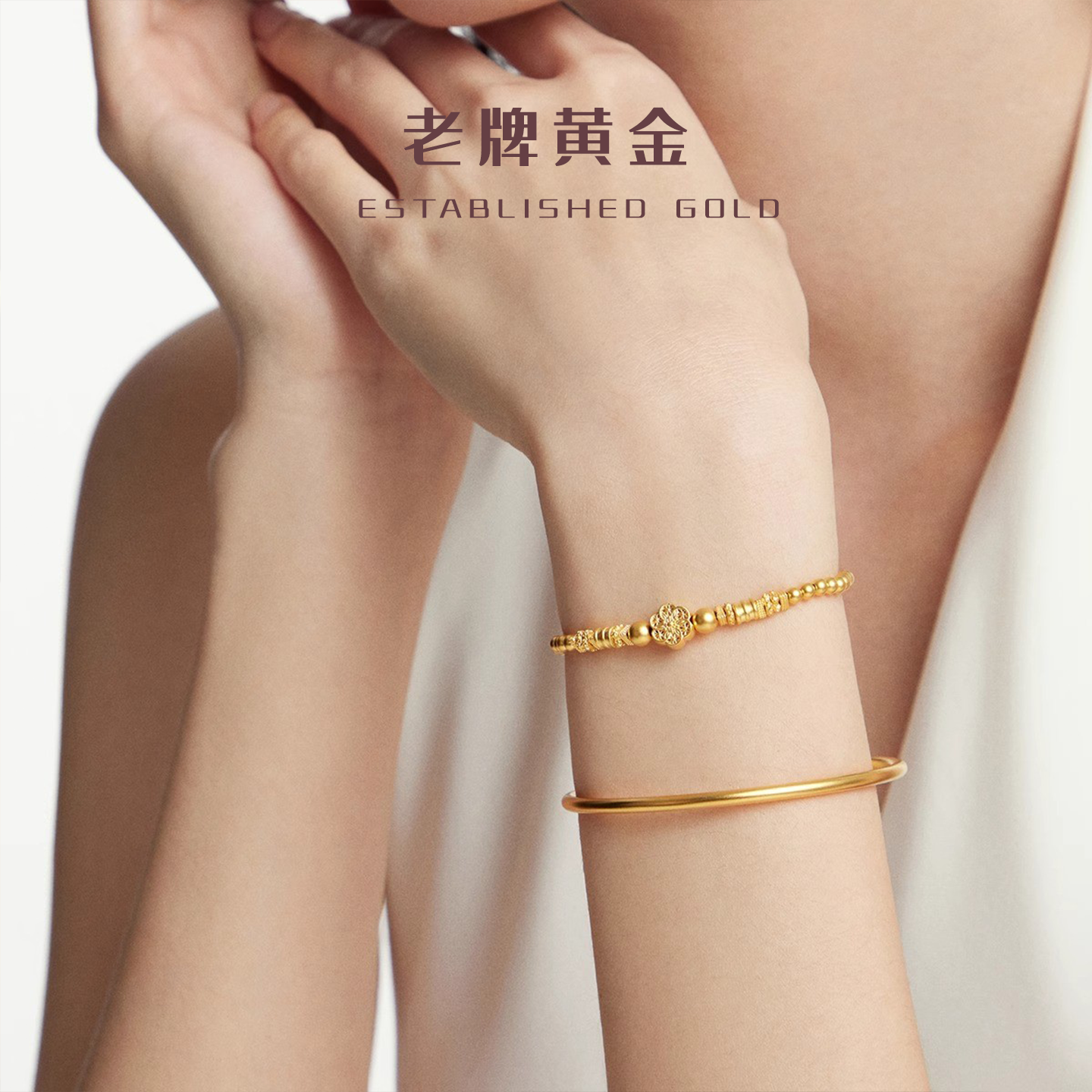 古法黄金掺铼素圈手镯实心传承铼金镯子不掉色足金闭口女手可回收