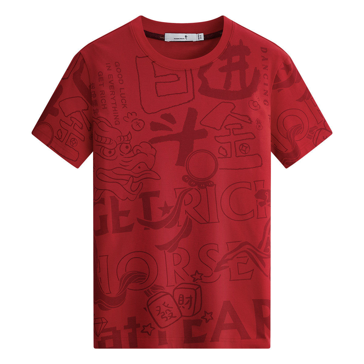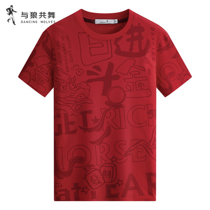 与狼共舞短袖日进斗金印花T恤男