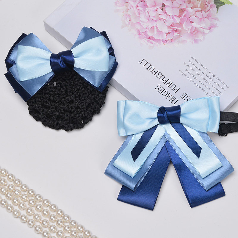 银行领花女蓝色红色工作服邮政工装酒店餐饮红白蓝高级衬衫领百搭