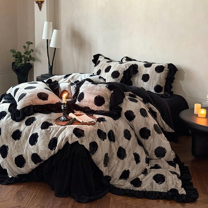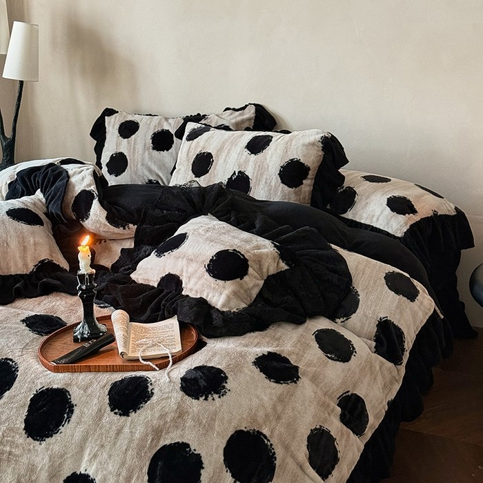 冬季牛奶绒四件套雪貂绒简约波点印花保暖加厚床单被套床裙床品