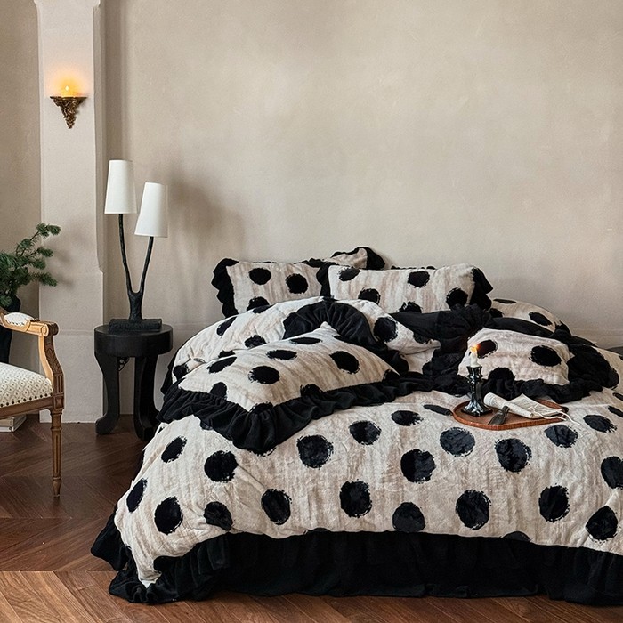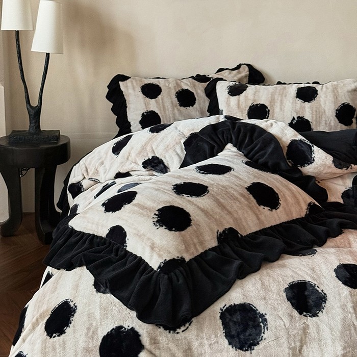 冬季牛奶绒四件套波点雪貂绒简约