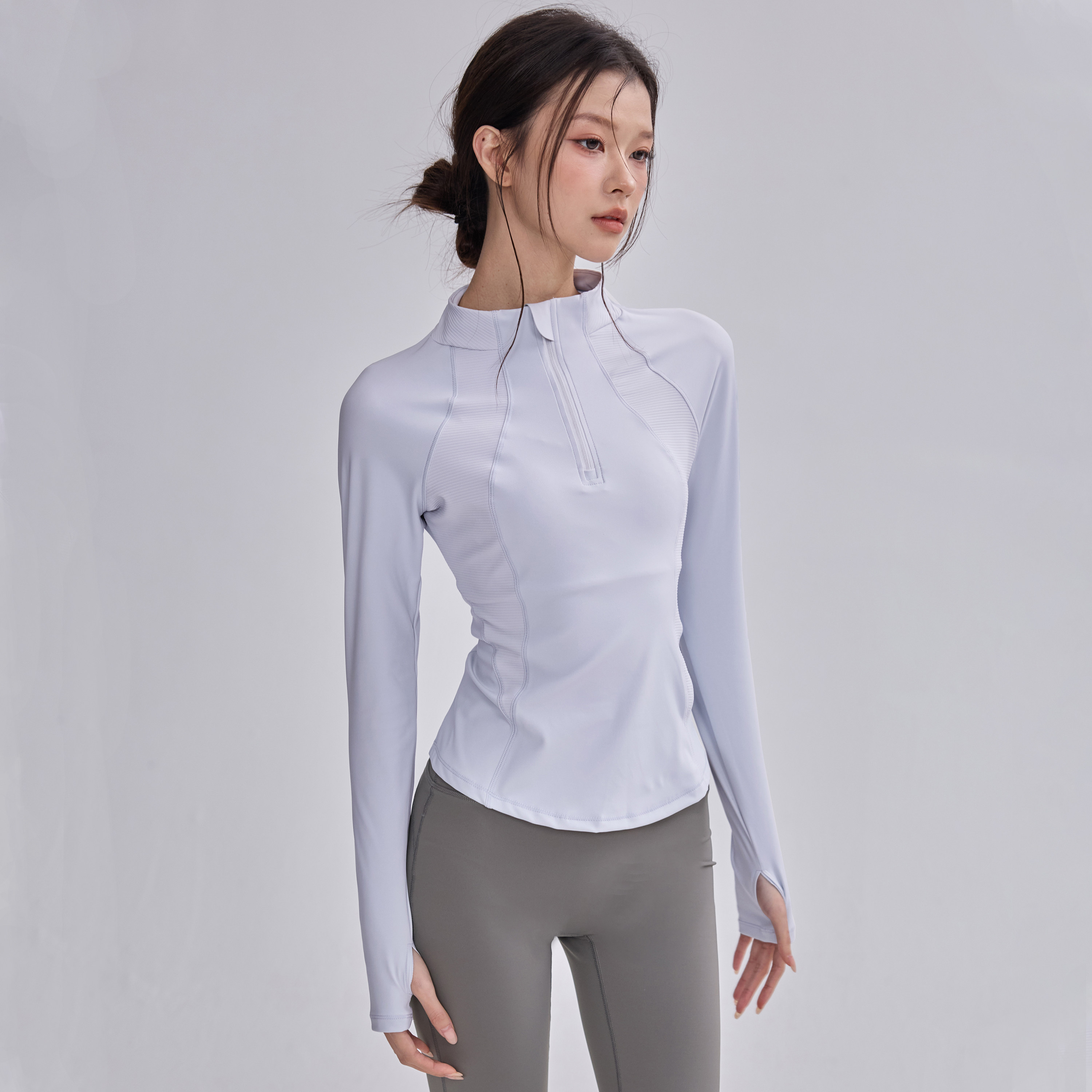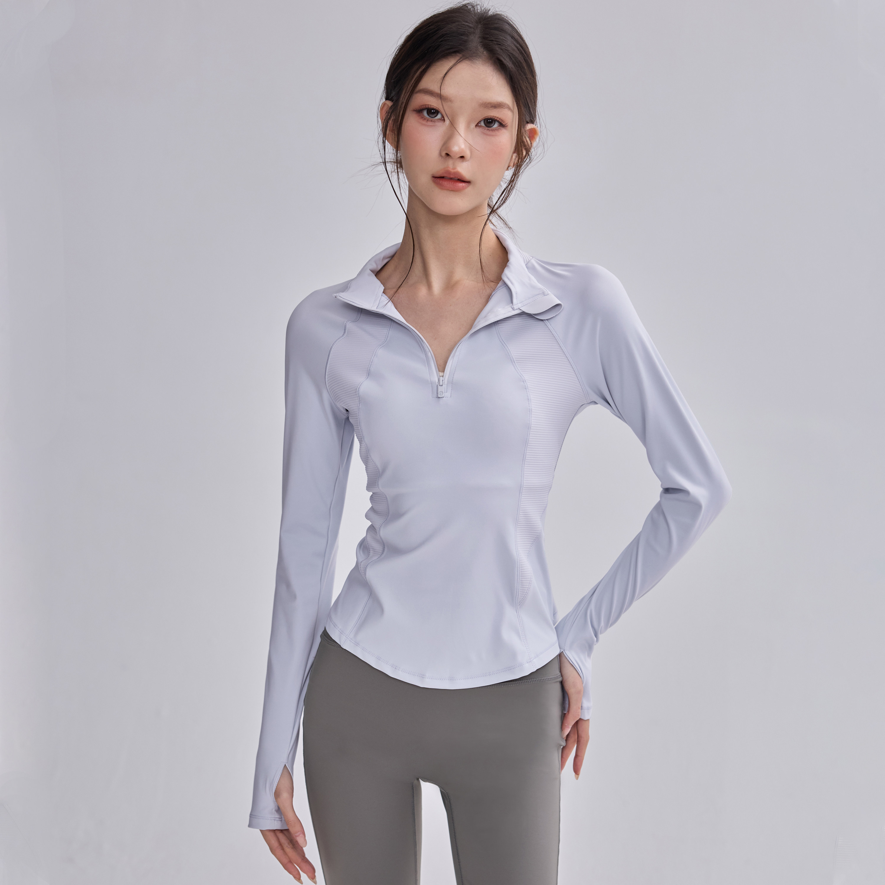 瑜伽服长袖女半拉链运动健身上衣普拉提训练秋冬新款跑步骑行T恤