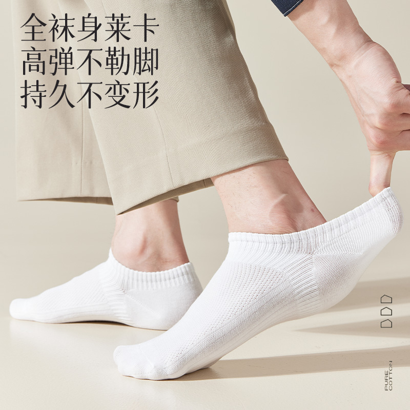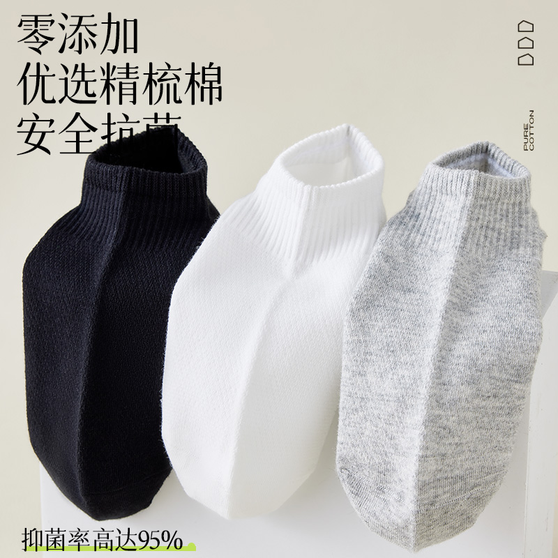 袜子男款船袜不掉跟夏季男士隐形新款透气束腰防滑网眼黑色短袜PB