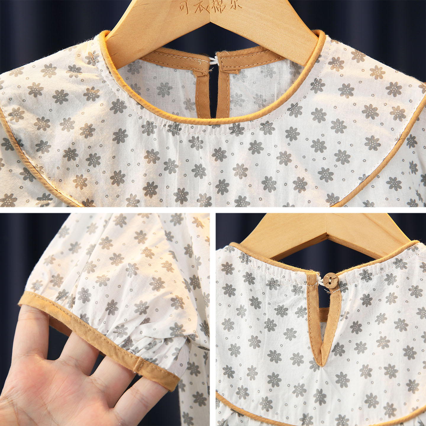 女童短袖衬衫夏季2025新款小女孩洋气好看碎花娃娃衫宝宝纯棉上衣