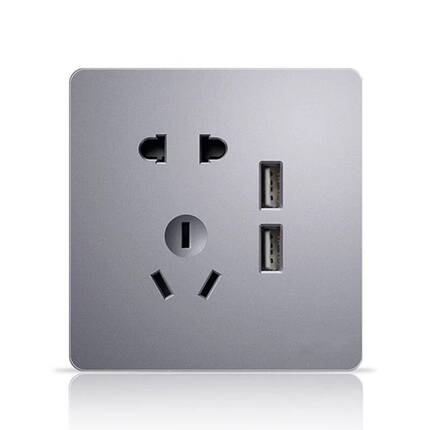 法狮龙开关插座二三插带usb五孔5孔墙壁家用86型暗装面板银灰色